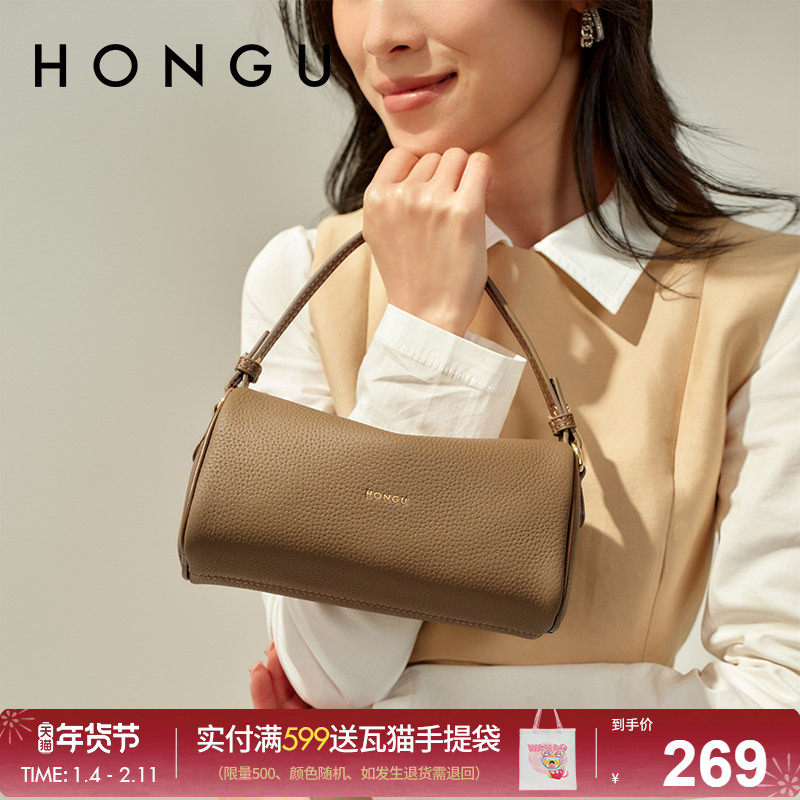 红谷包包2024新款真皮单肩斜挎包牛皮波士顿枕头包手提女士包小包