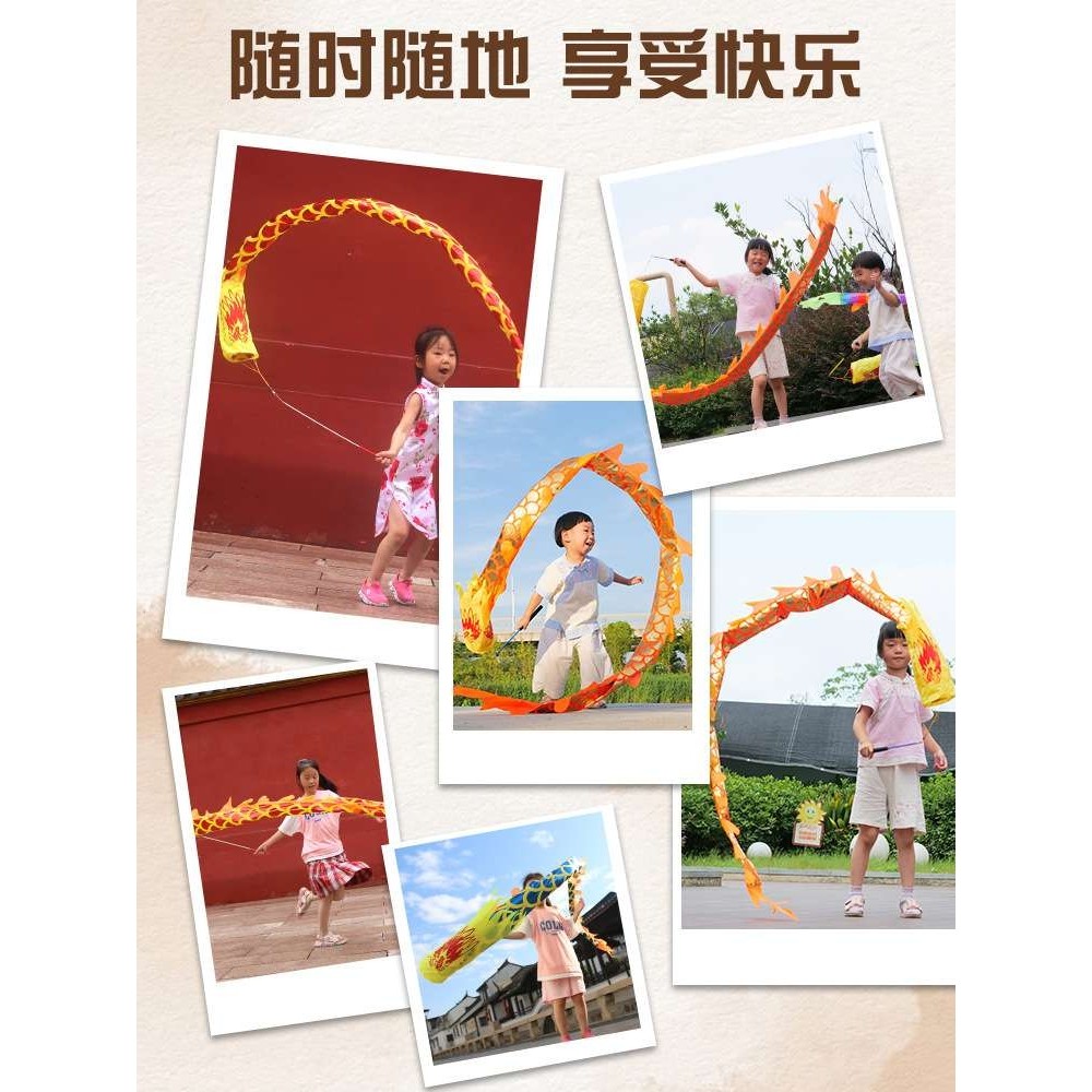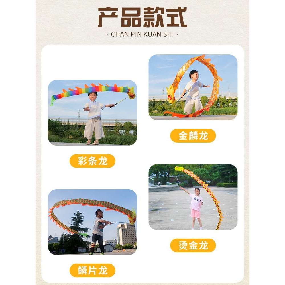 舞龙彩带健身儿童甩甩龙道具广场彩带舞龙耍表演初学杆甩空竹龙彩