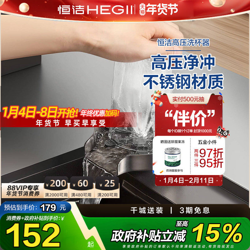 恒洁高压洗杯器304不锈钢厨房水槽洗菜盆咖啡奶茶自动冲杯子神器