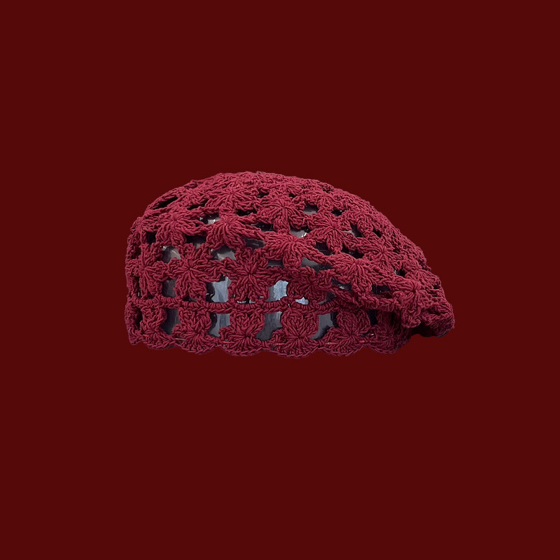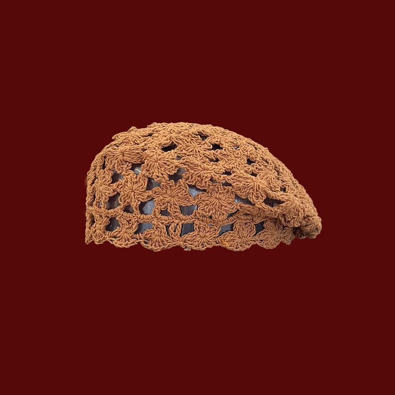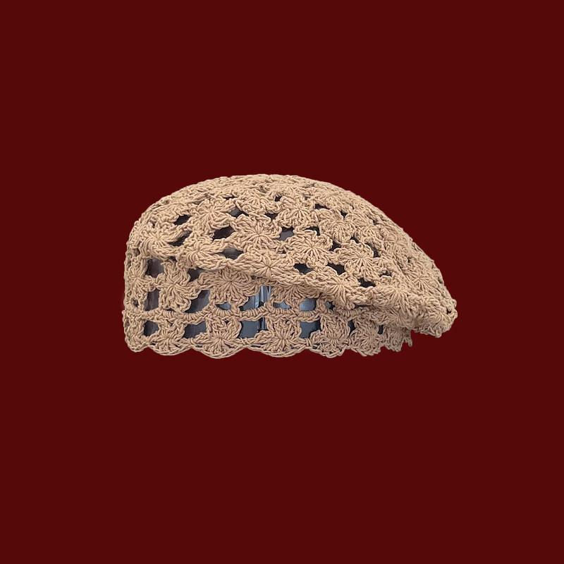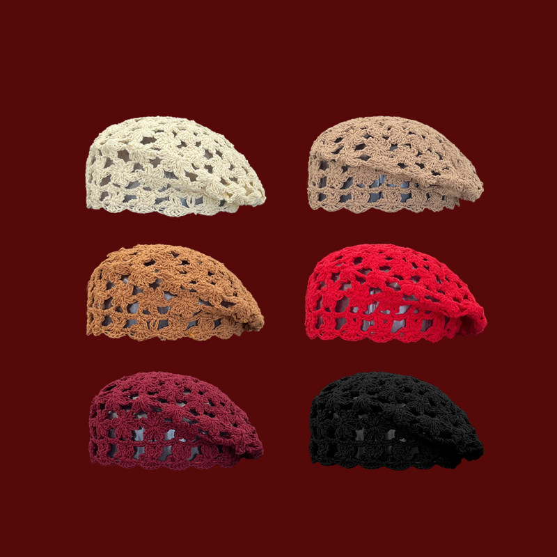 Classy key新加坡设计师联名款透气镂空编织贝雷帽子显脸小画家帽