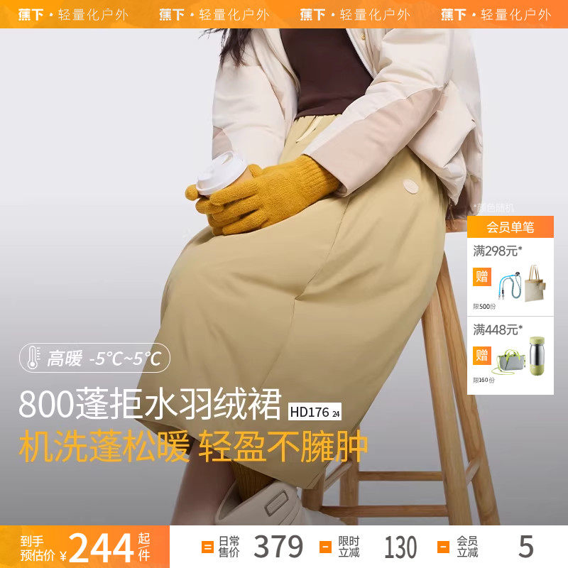 蕉下蕉下羽绒裙女秋冬保暖A字高腰显瘦花苞裙遮胯梨型防风半身裙