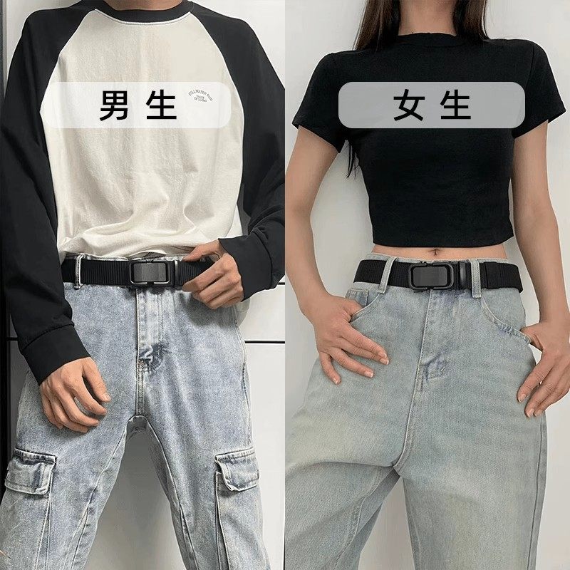 2025新款尼龙帆布自动扣男女式皮带牛仔阔腿裤休闲百搭学生腰带