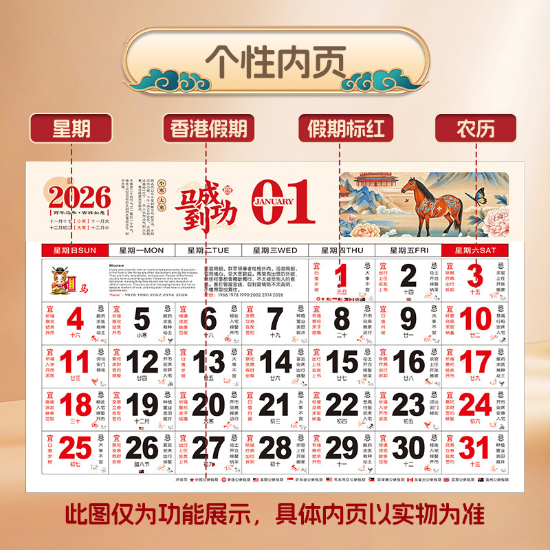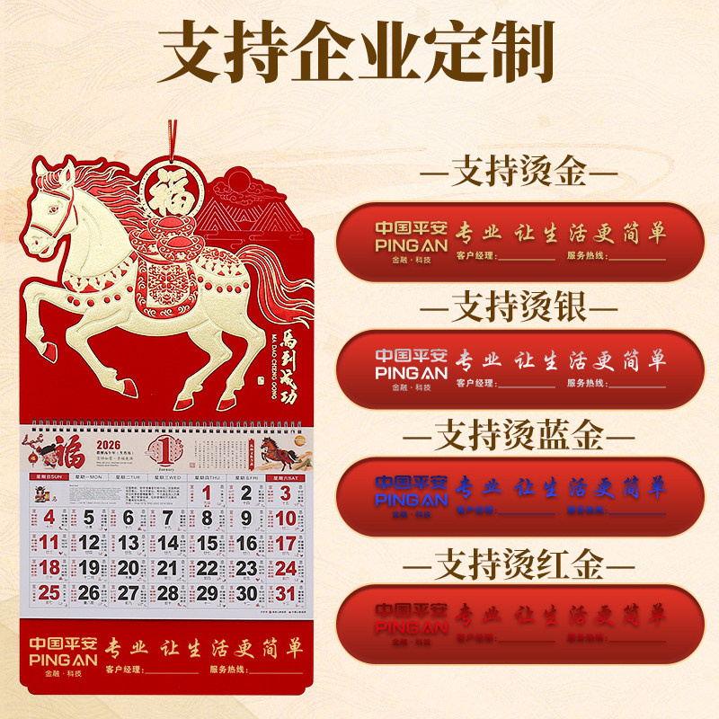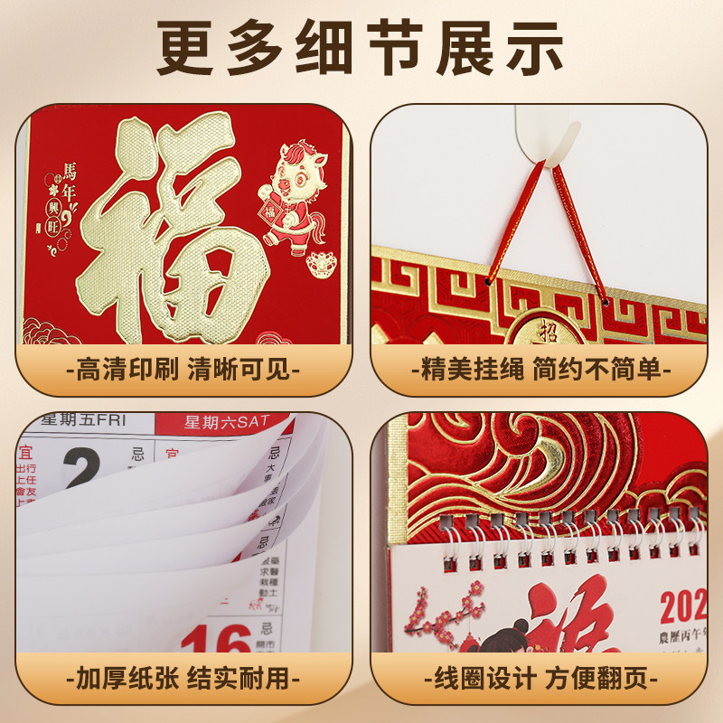 2026年挂历定制月历订做金箔福字挂历定做中国风福牌吊牌加大加厚