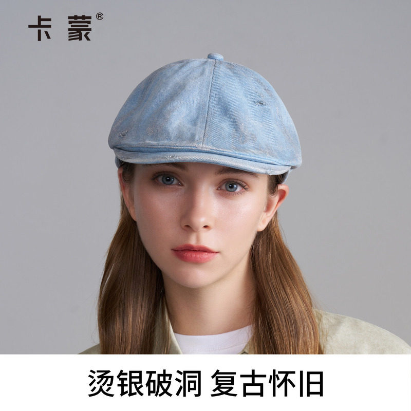 卡蒙复古前进帽法式牛仔贝雷帽女款2025新款大头围显脸小画家