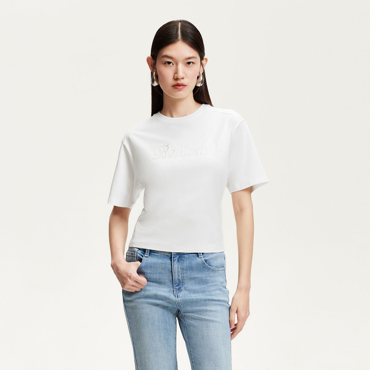 Vero ModaT恤2025夏季新款含棉莱赛尔圆领字母装饰上衣325201057