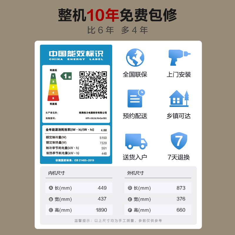 【纯铜管】海尔空调1.5匹1匹家用一级变频冷暖挂机净省电E1旗舰店