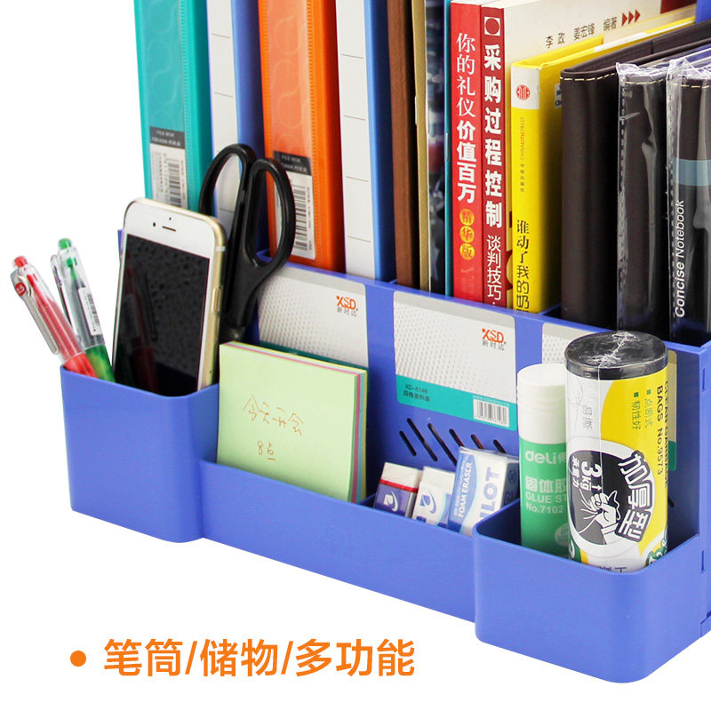 得力文件框文件收纳架加厚文件放置架黑色简易立式书立文件架书架桌面办公文件收纳架文件盒桌上资料架