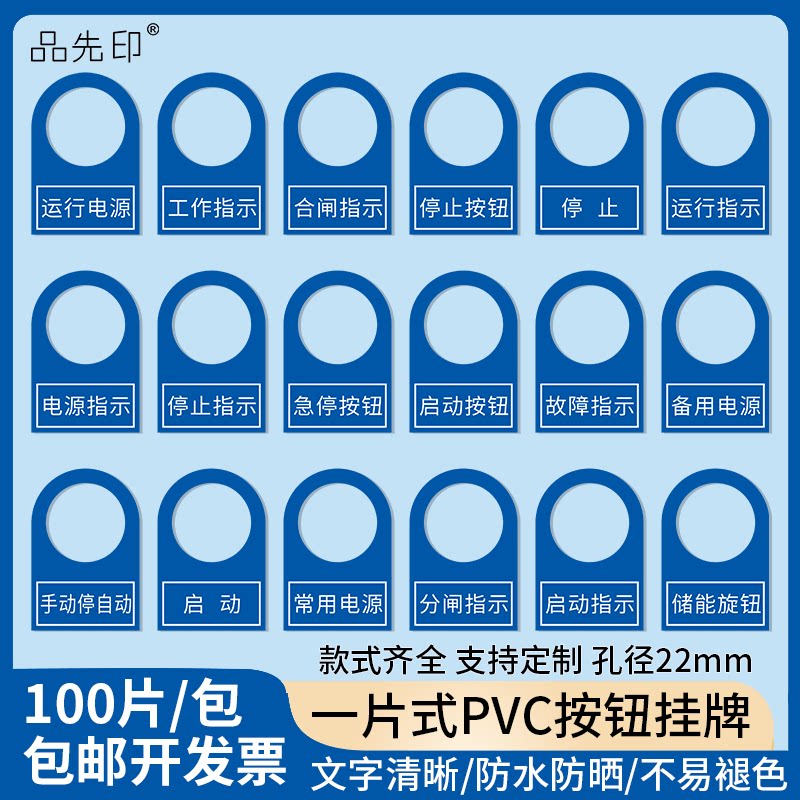 22mm开关按钮电气标牌启动停止电柜控制箱指示灯标识牌铭牌包邮