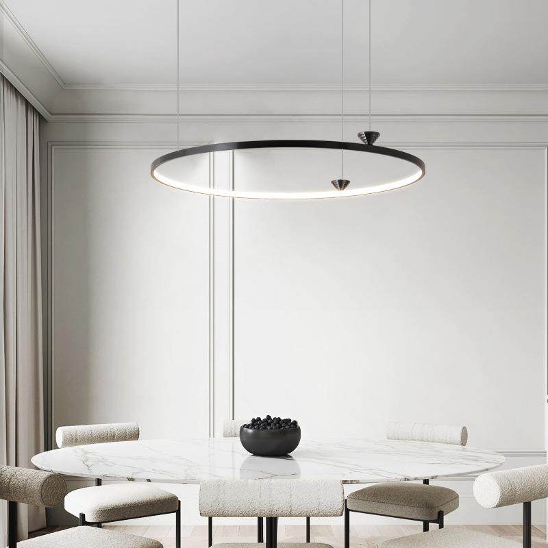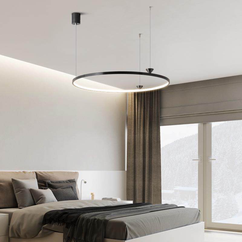 全铜客厅吊灯现代简约轻奢大气圆环大灯北欧家用餐厅卧室中山灯具