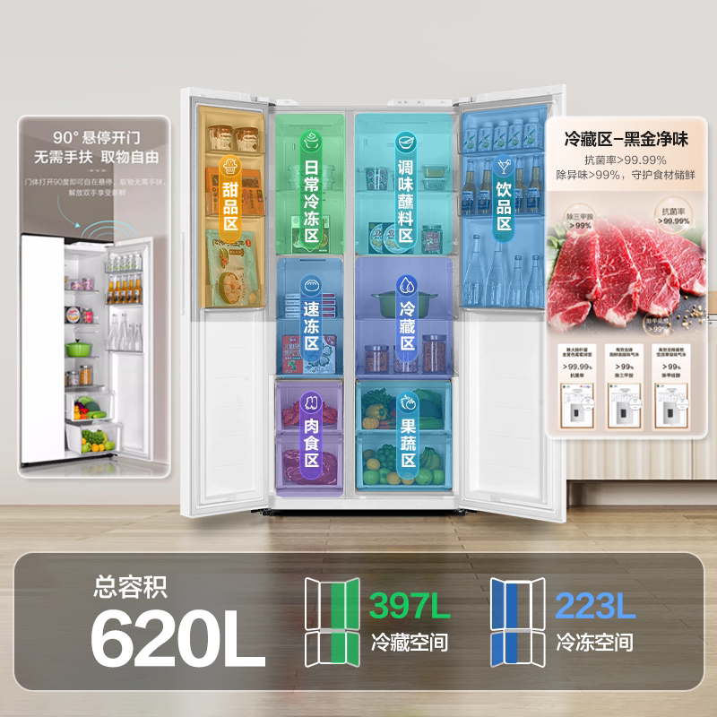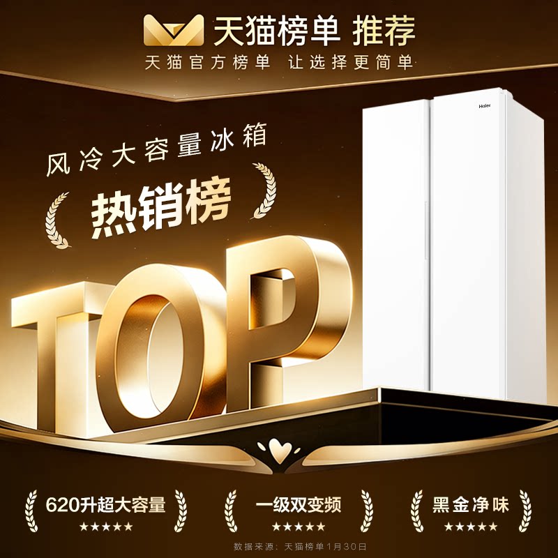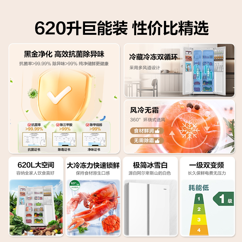 【超级爆款】海尔冰箱620升对开双开门超大容量一级变频官方正品