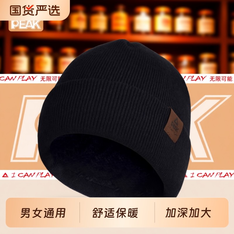 匹克帽子秋冬季针织帽保暖加厚男女新款防寒护耳运动冷帽加绒黑色