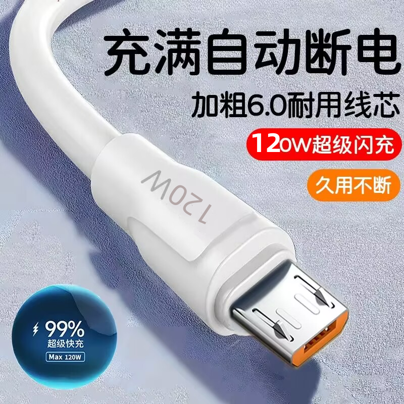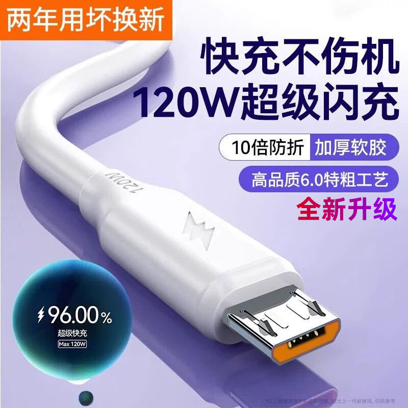 120W安卓数据线usb充电器线适用华为OPPO小米红米vivo荣耀三星手机快充线加粗铜芯老款梯形接口小口Micro USB