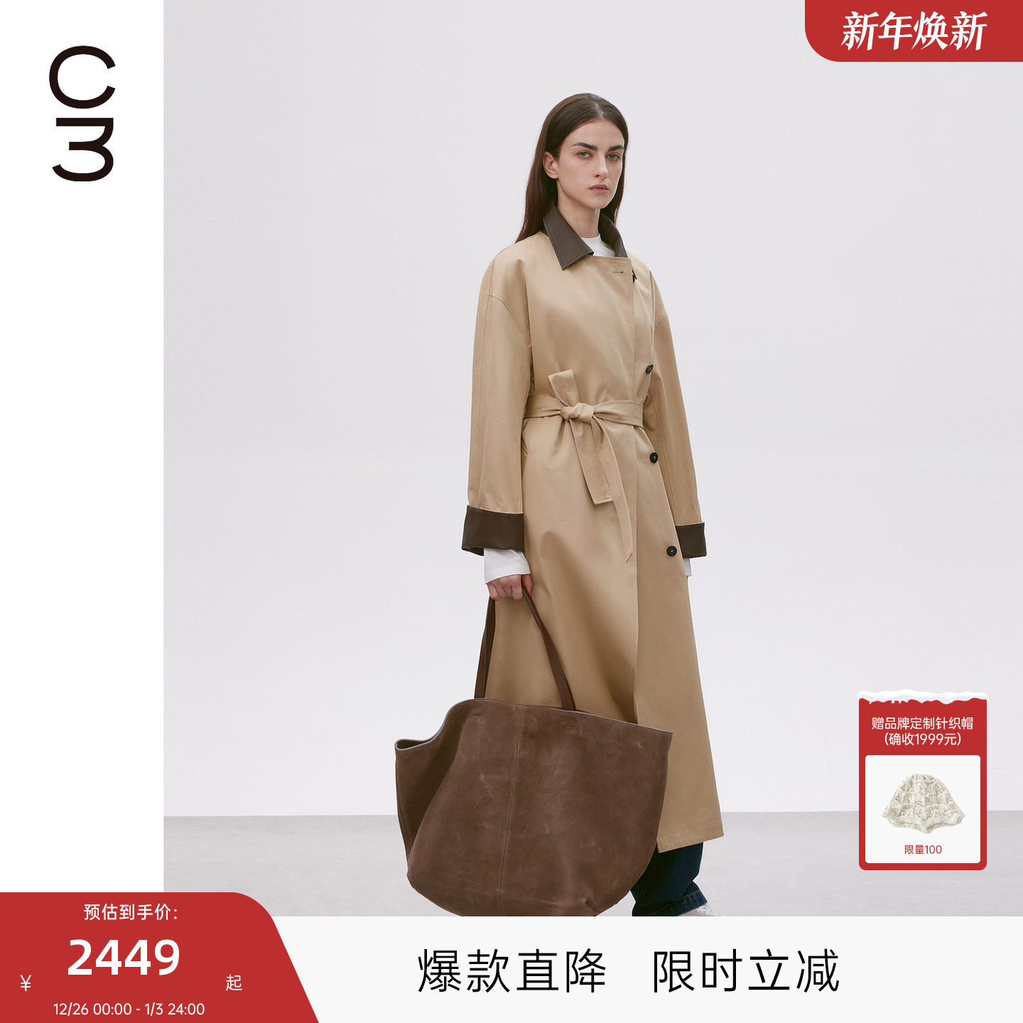 MISSCOCOON可可尼C3系列长款外套女2025年秋款通勤翻领真丝棉风衣