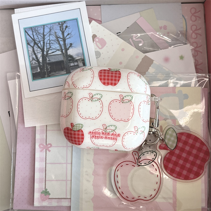 日韩ins可爱甜美小清新红线条苹果吊坠airpods1/2代苹果无线蓝牙耳机套pro2新款少女3代保护套4代防摔女
