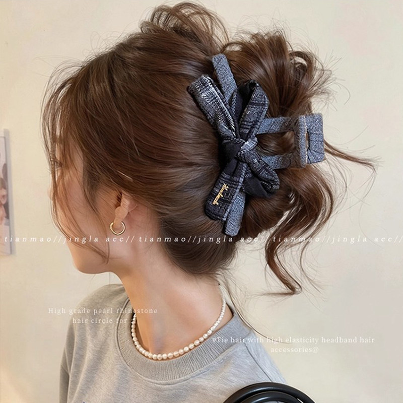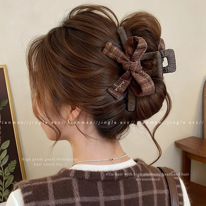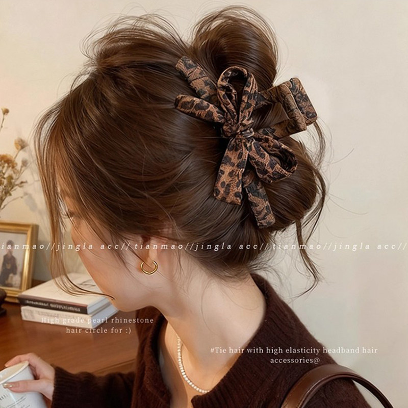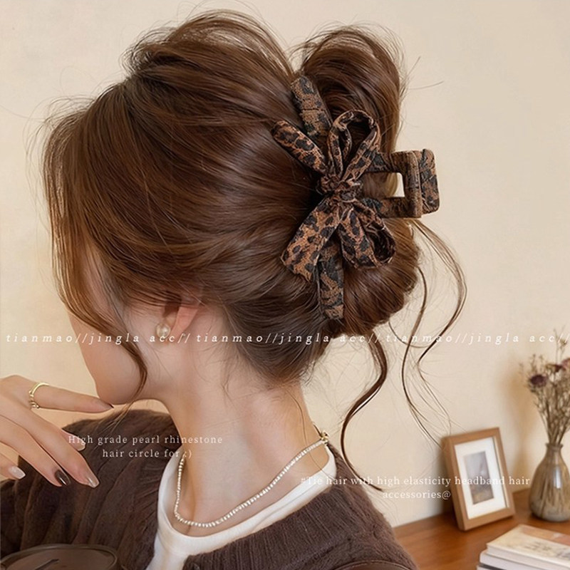 秋冬豹纹蝴蝶结抓夹女高级感2025新款后脑勺发夹大号鲨鱼夹子头饰