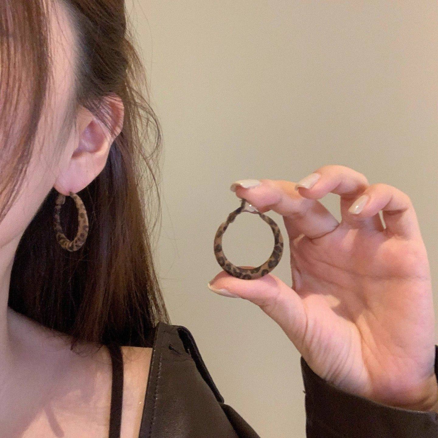 豹纹琥珀色耳圈女秋冬2025新款爆款高级耳饰复古港风大耳环圈圈