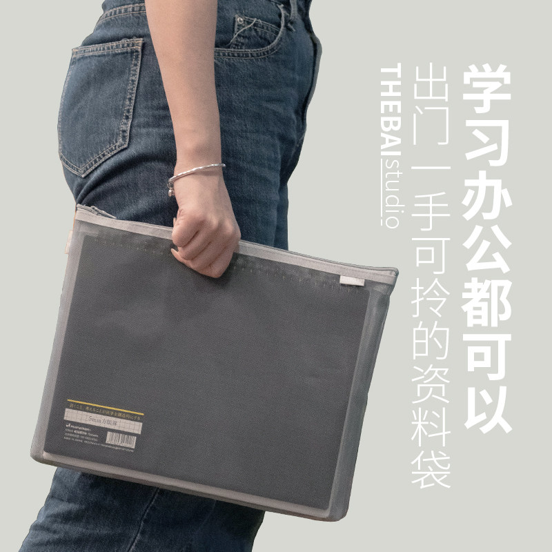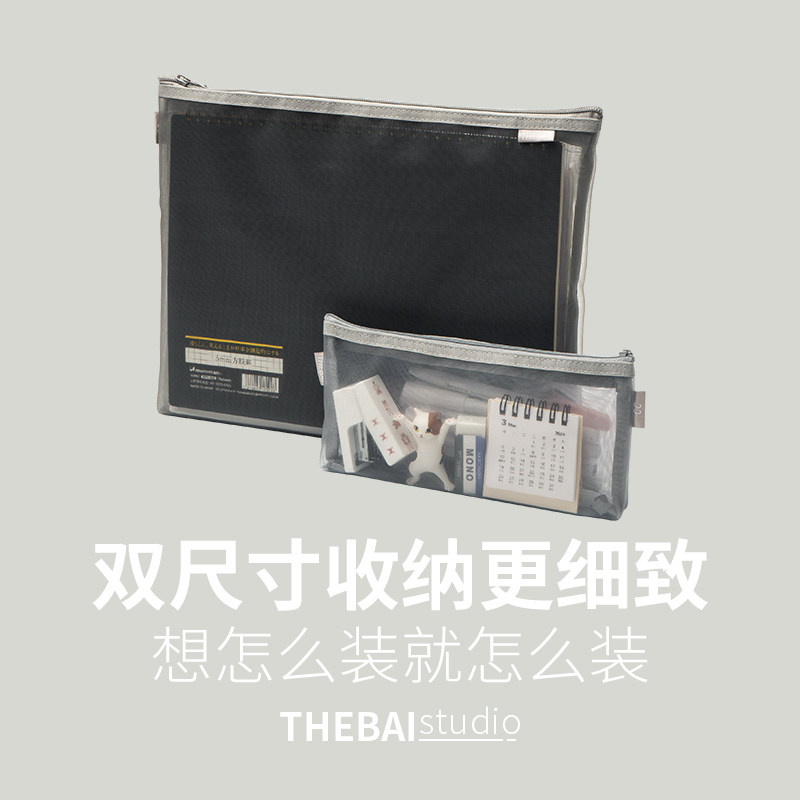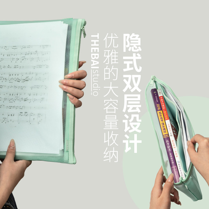 THEBAI CC学习资料袋网纱双层收纳笔袋A4学生试卷学科办公分类用