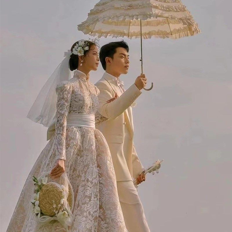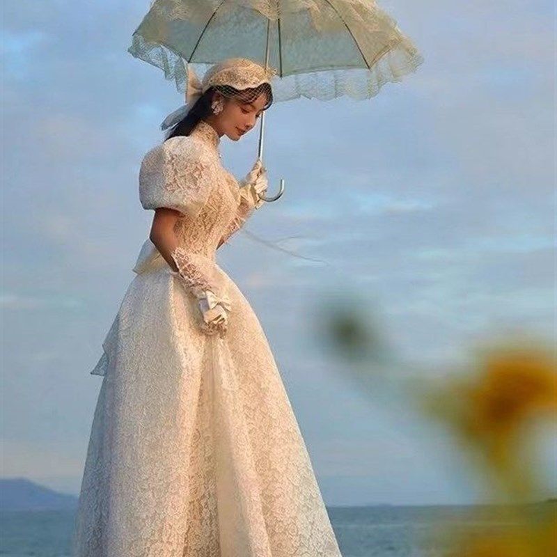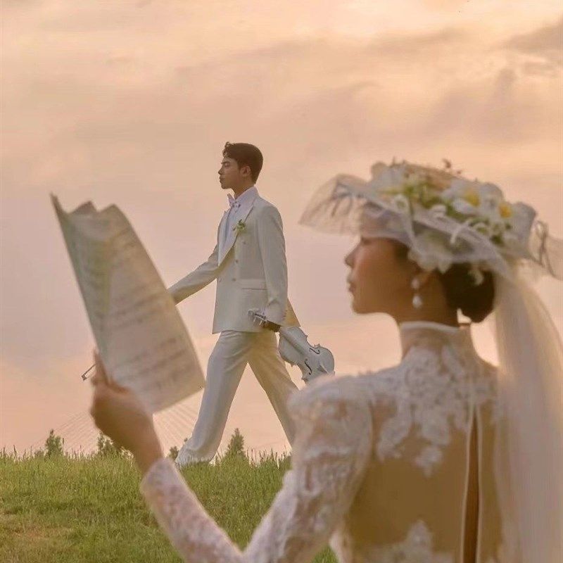 法式浪漫田园小新赫本风婚纱照影楼摄影道具洛丽塔伞白色小提琴