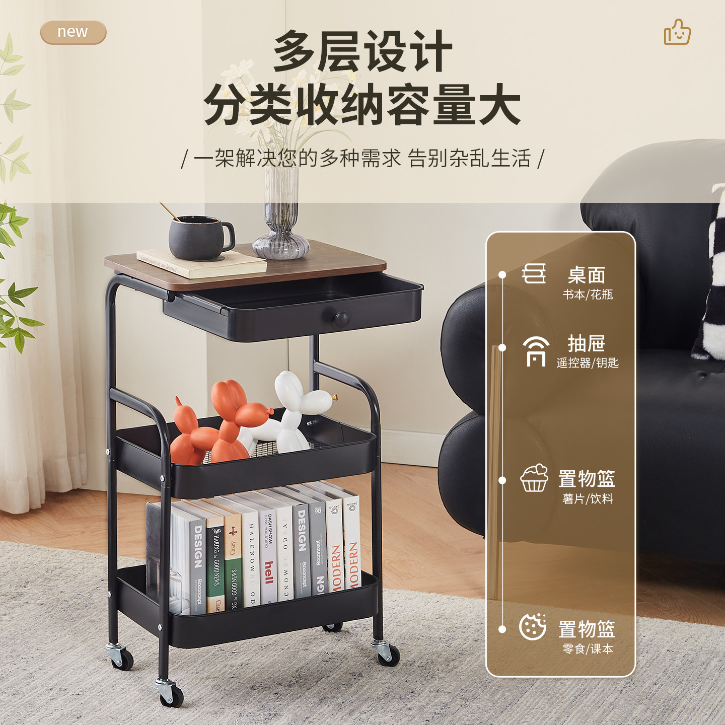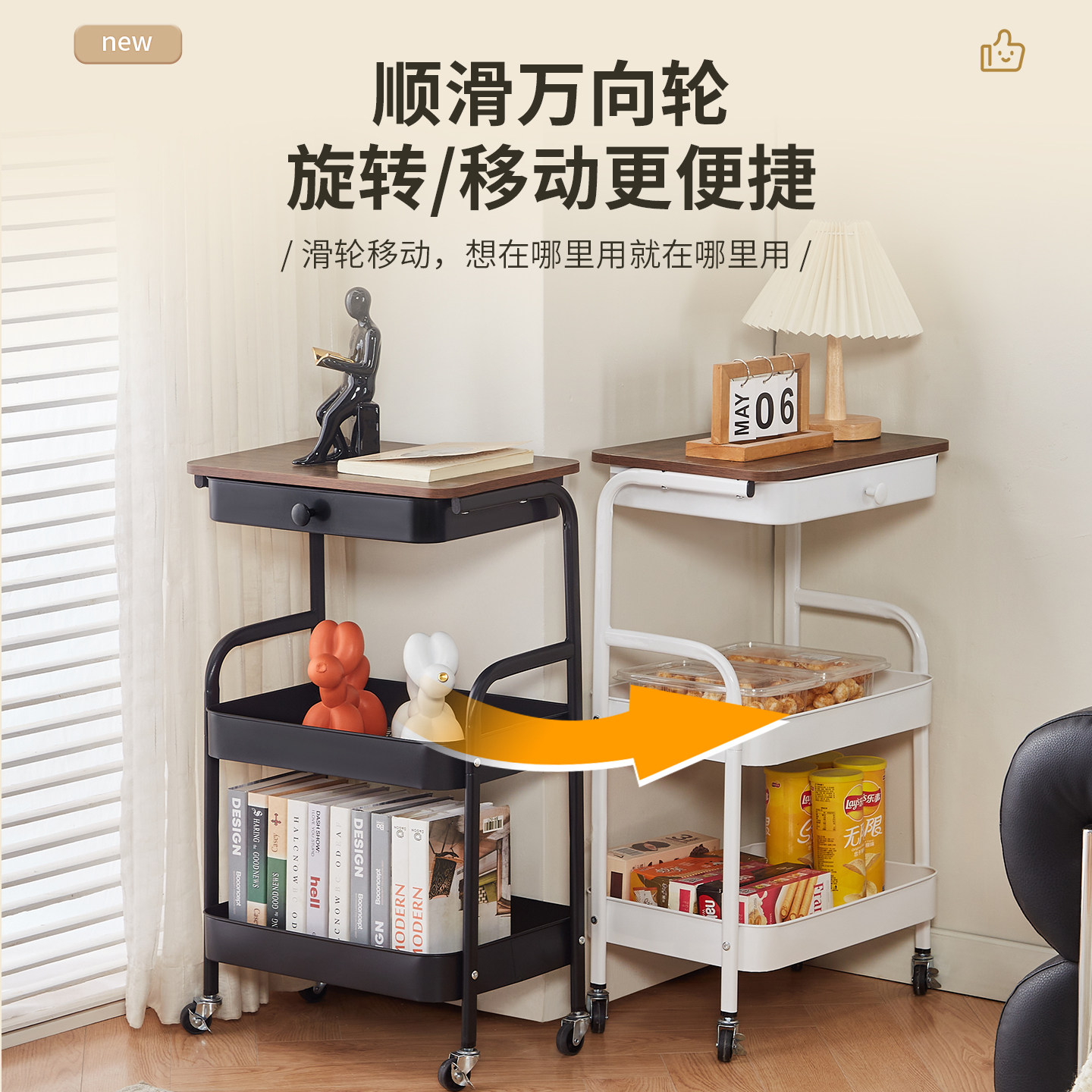 可移动小推车收纳置物架床头柜沙发边几茶几零食收纳架子客厅双层
