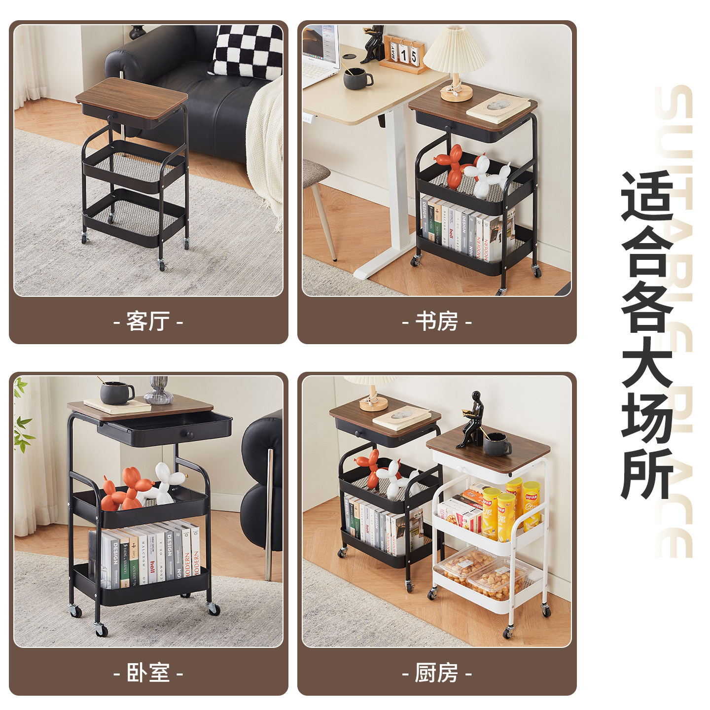 可折叠置物架小推车落地家用室内客厅卧室茶几边几沙发边柜收纳架