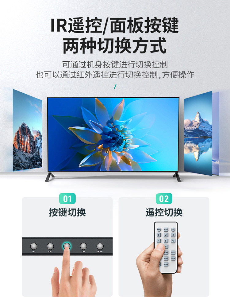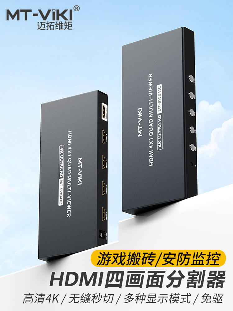 迈拓维矩 MT-SW041C 4口分割器4K四进一出dnf搬砖魔兽游戏工作室视频监控屏幕高清hdmi分屏器一体机