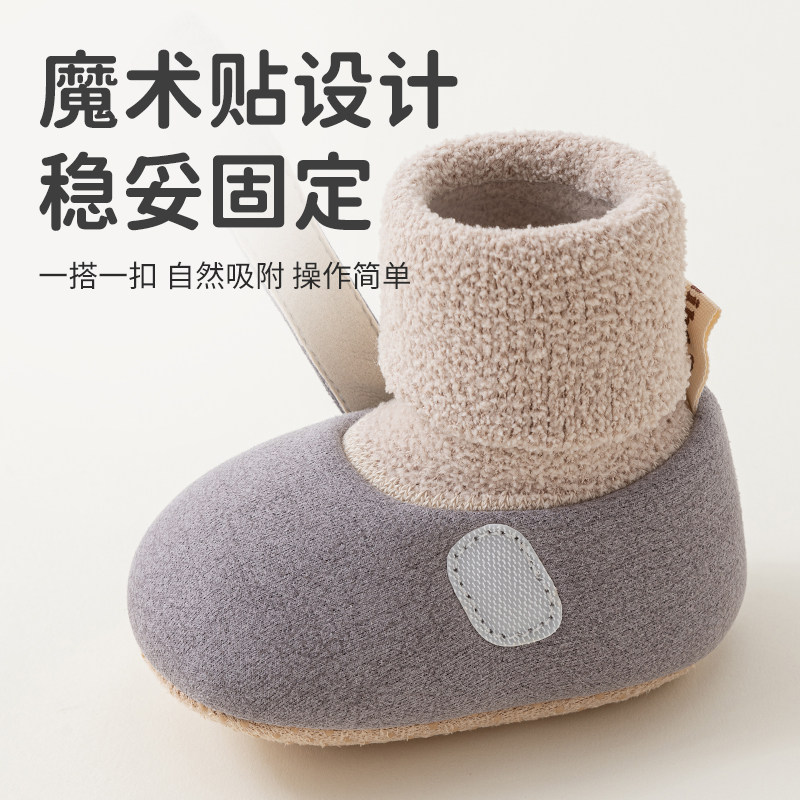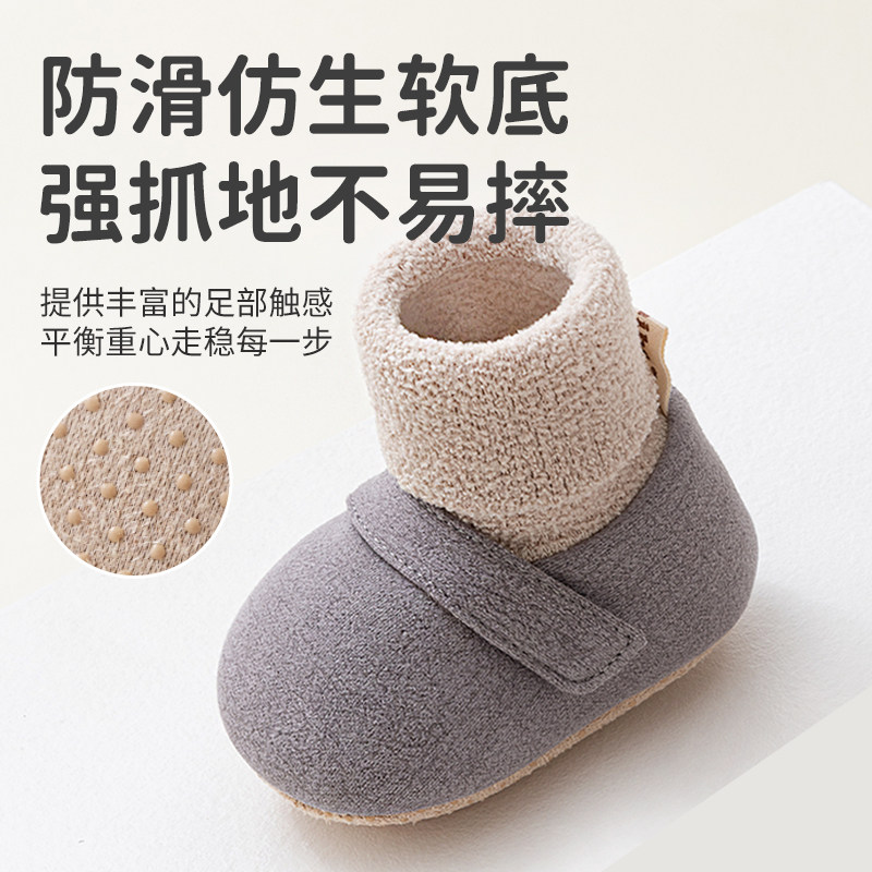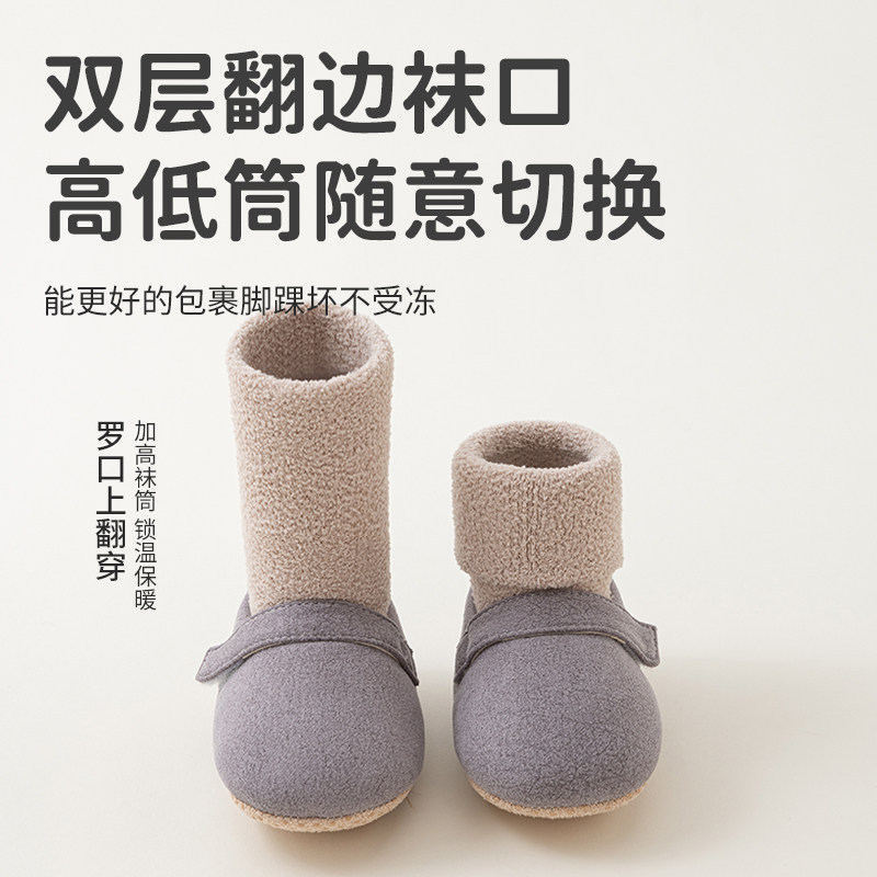 五朵棉婴儿鞋袜秋冬季防滑学步鞋软底室内宝宝袜子新生儿加绒加厚