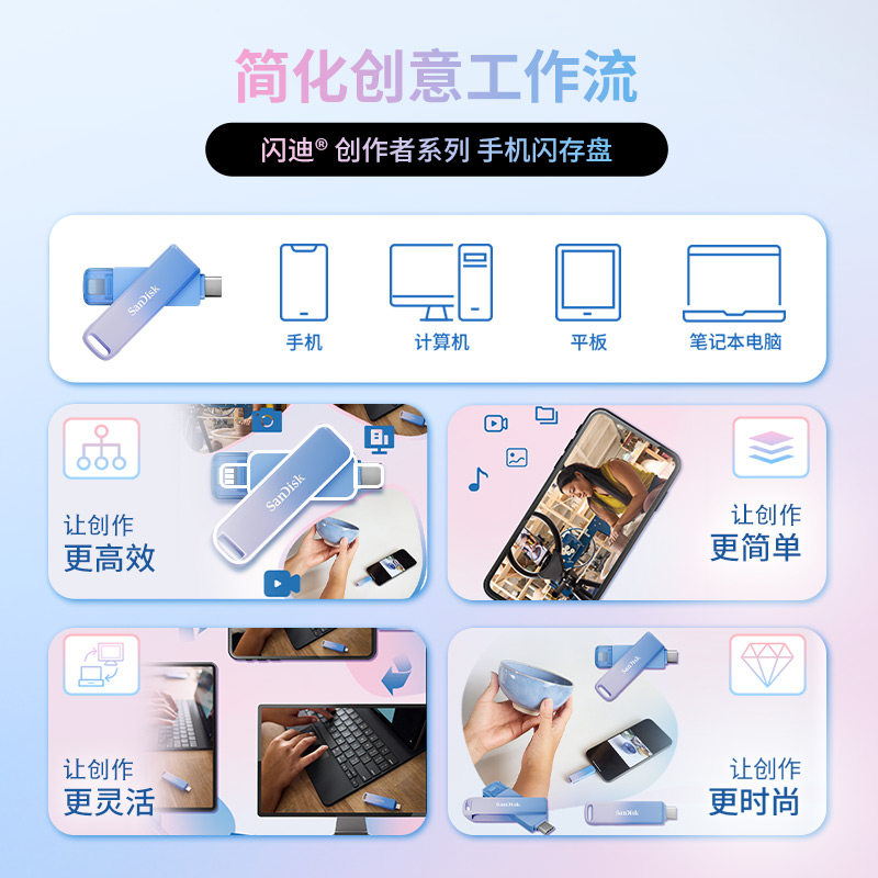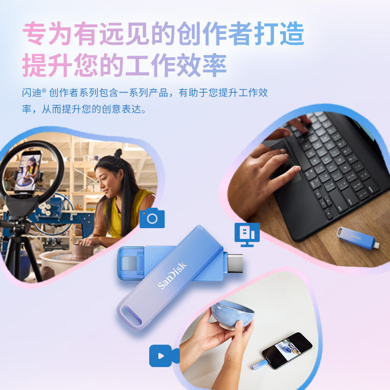 闪迪创作者u盘128GType-C双接口苹果安卓手机电脑两用全金属优盘