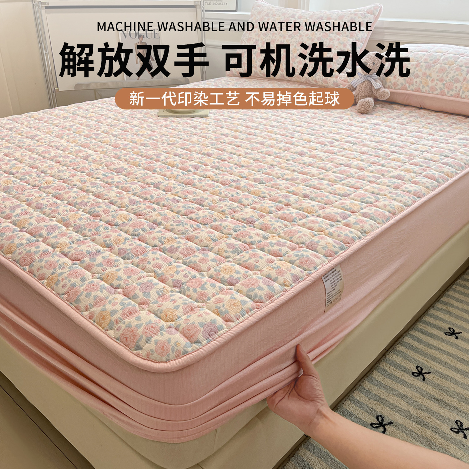 2026新款防污渍夹棉加厚床笠床罩床垫保护罩皱皱纱席梦思床单套罩