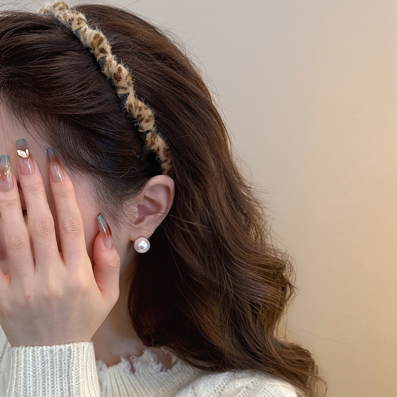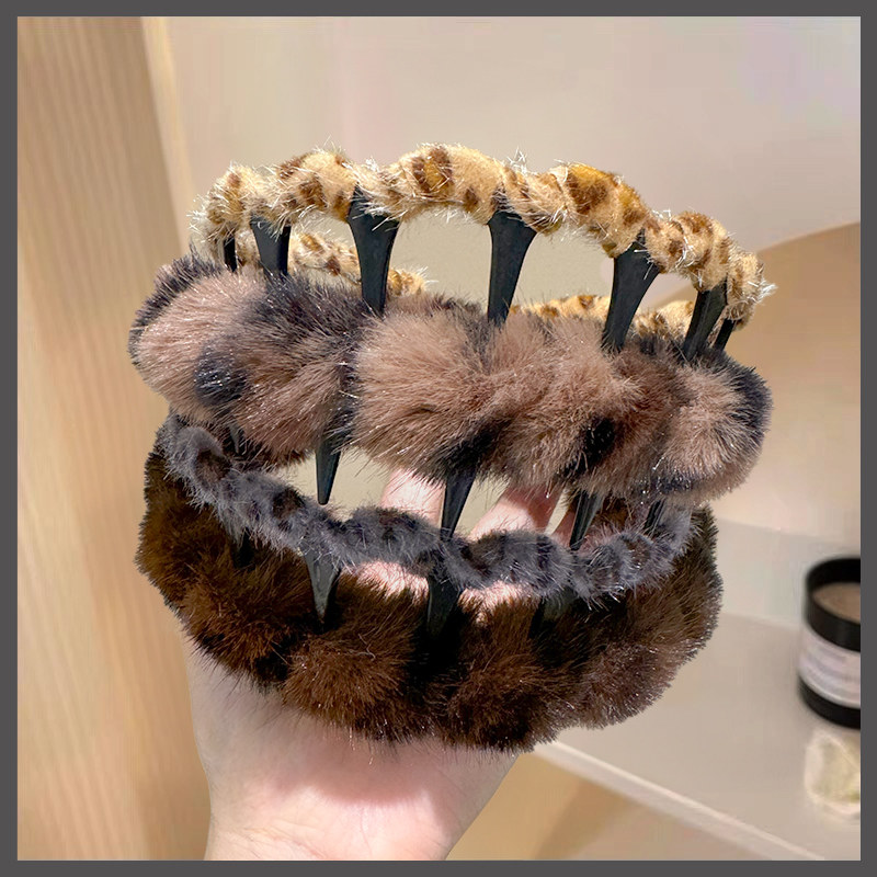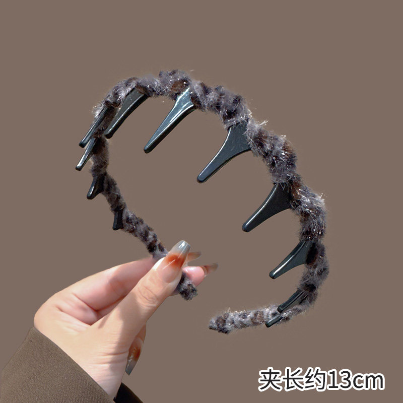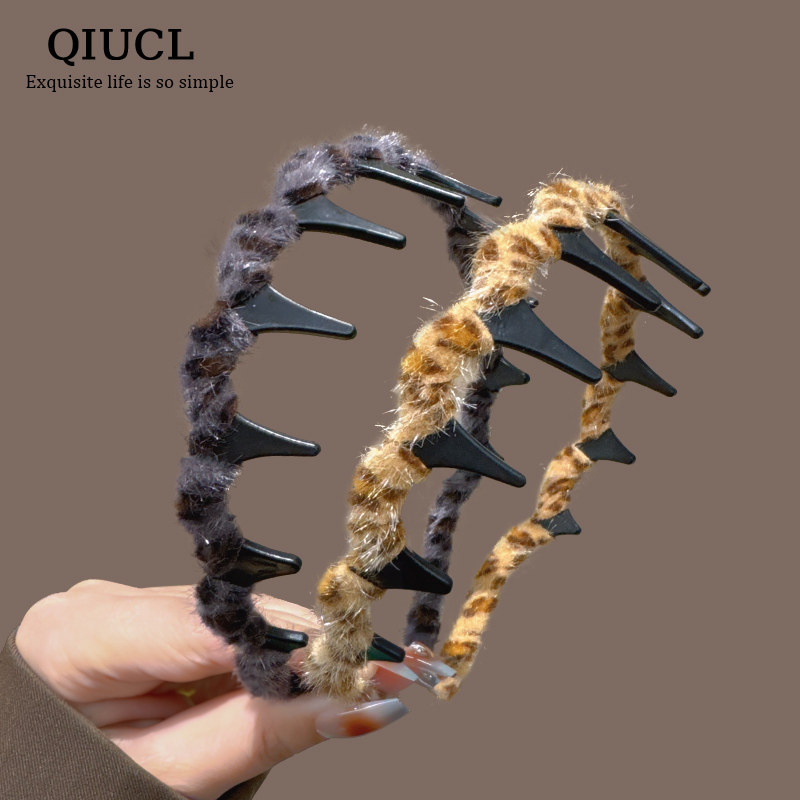 秋冬毛绒豹纹带齿防滑发箍女2024新款洗脸化妆头箍外出发卡头饰新