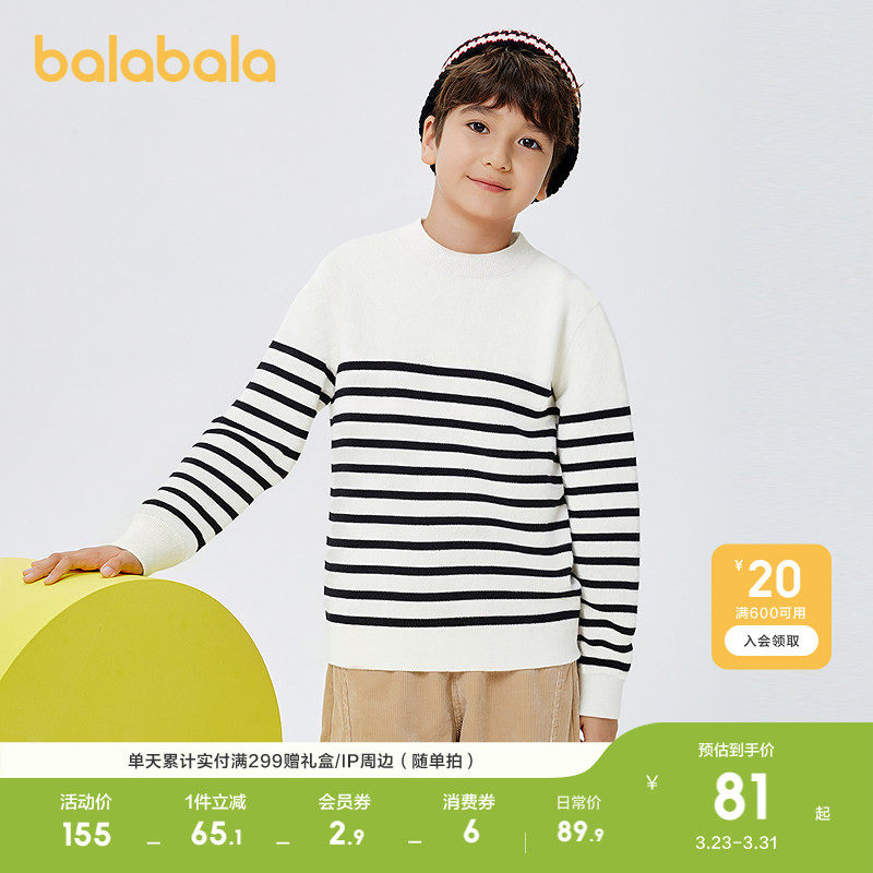 巴拉巴拉童装儿童条纹针织衫男女童秋冬毛衣毛衫洋气时尚打底上衣