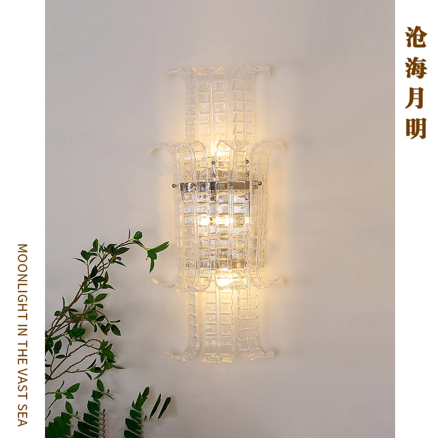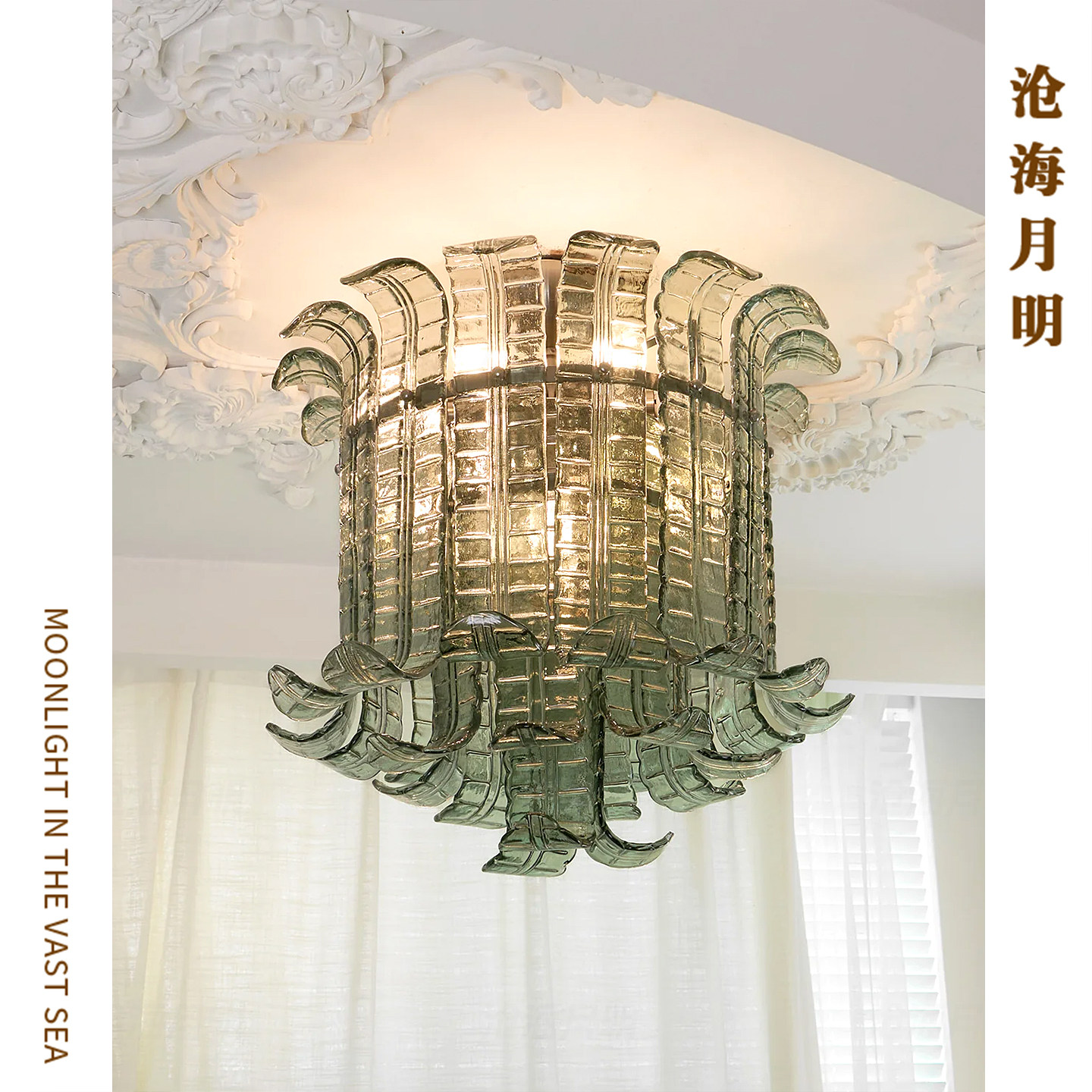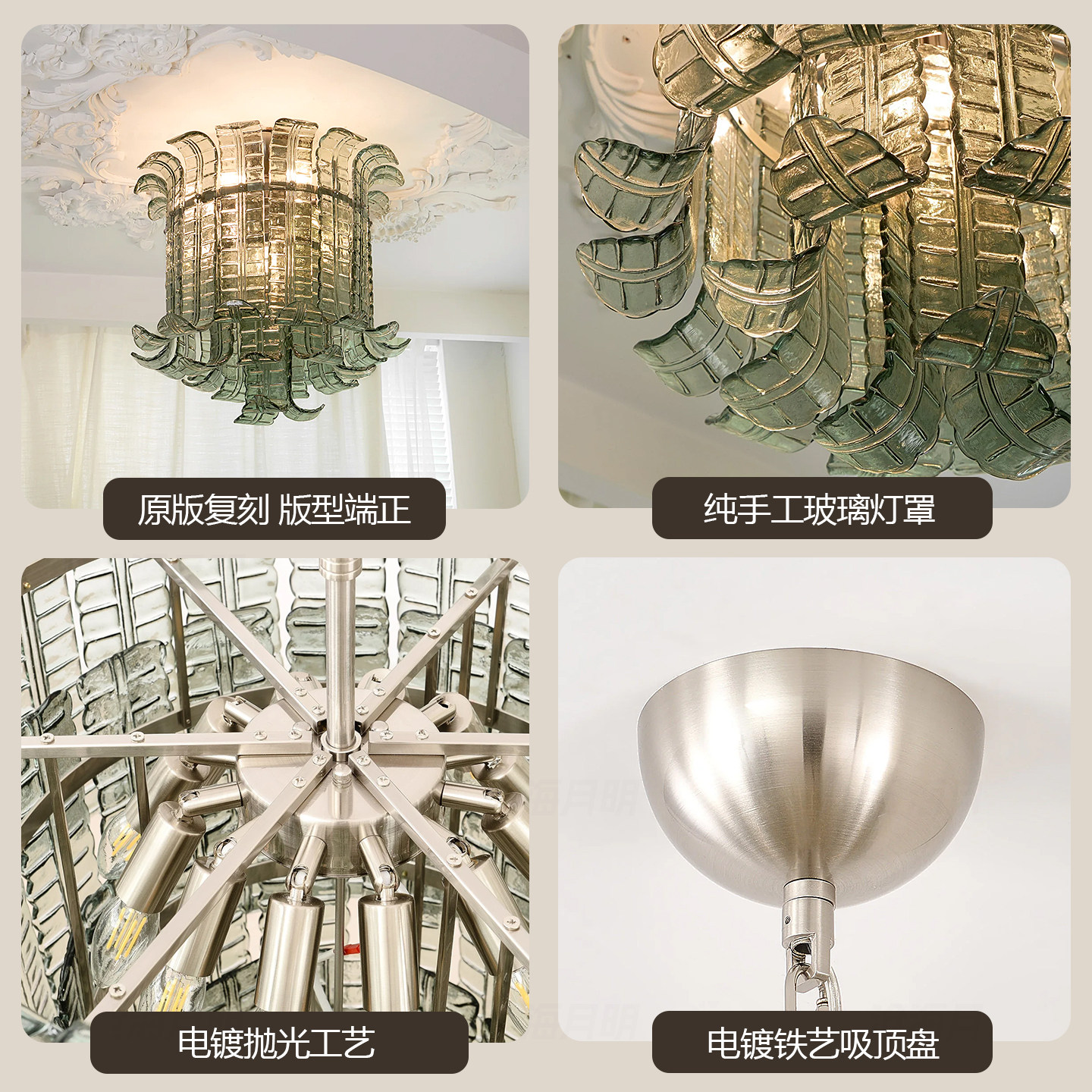 法式Murano穆拉诺透明棕榈叶玻璃中古客厅餐厅吊灯手工玻璃灯具