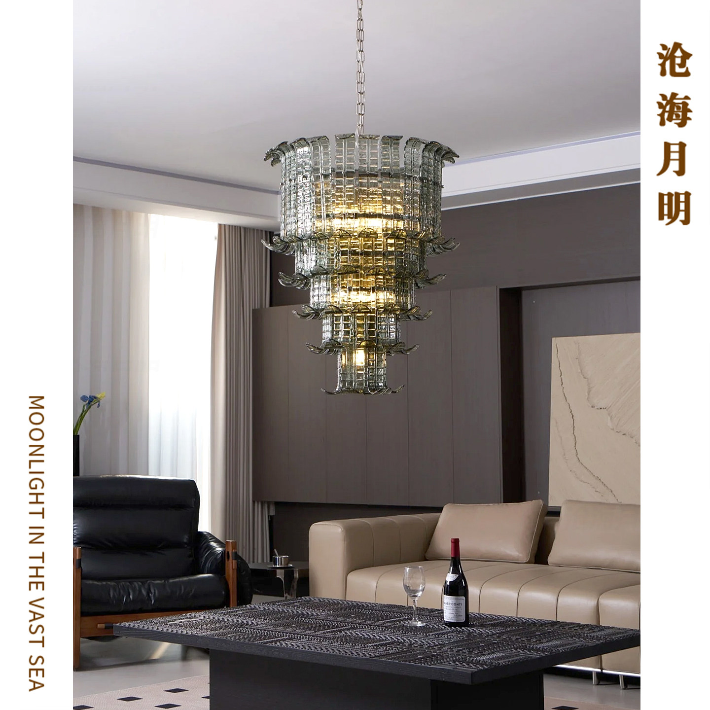月镜餐厅吊灯意式轻奢现代茶室岛台吧台餐桌设计师高端一字长条灯