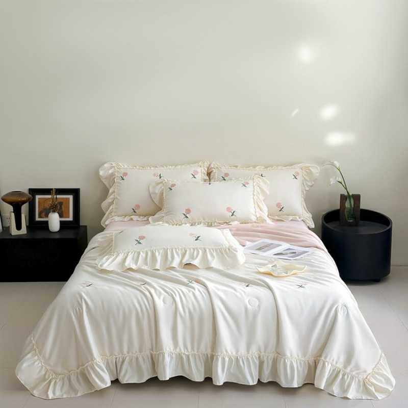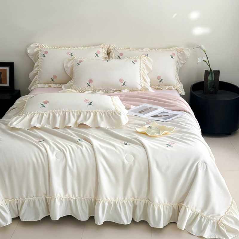 亲肤柔软花边2025年款印花被子刺绣毛巾夏凉被四件套夏季爆款裙边