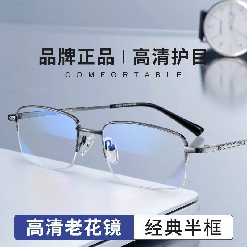 品牌老花眼镜中老年男式高清防蓝光50 100度老花镜高档正品超轻