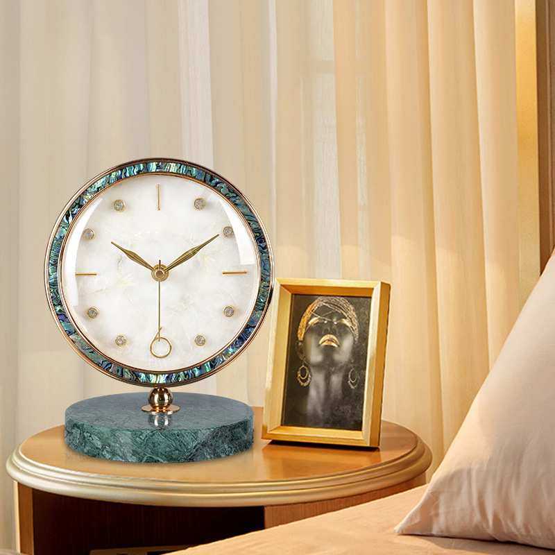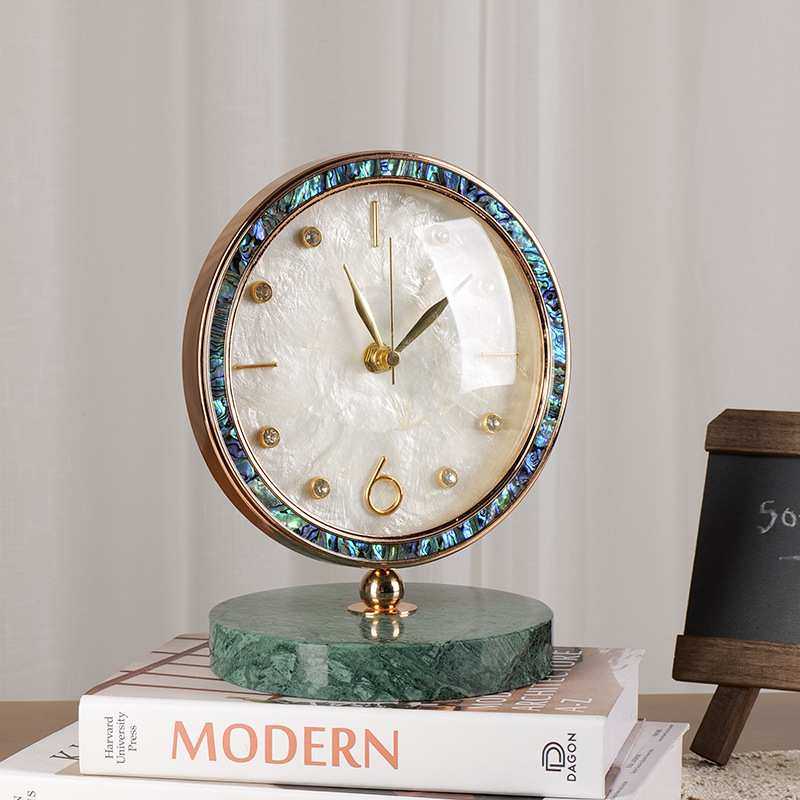 贝壳座钟欧式轻奢简约桌面摆件坐钟客厅高端大气静音时尚家用