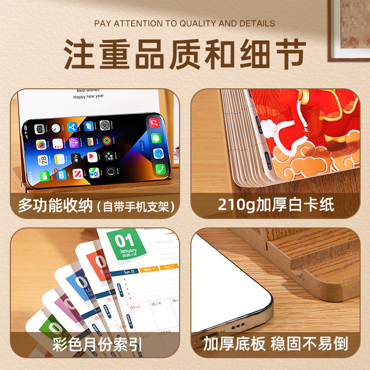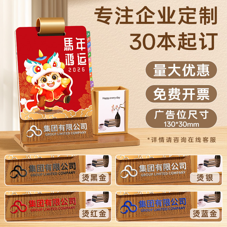 2026年新款台历记事木质桌面创意摆件马年企业logo定做办公多功能笔筒新年商务简约油画订制计划本日历定制