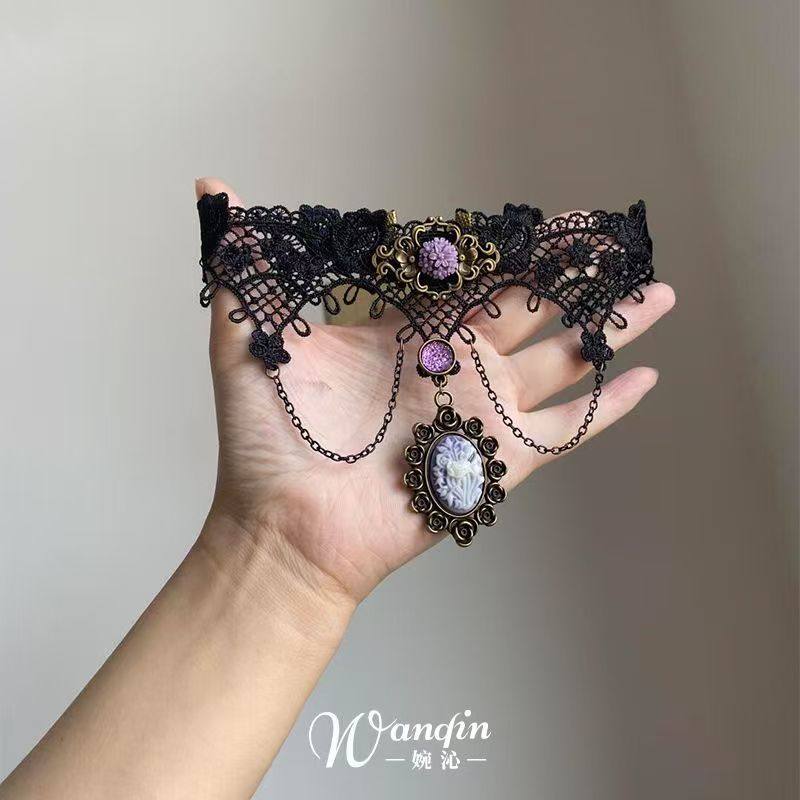 「曼陀罗」暗黑风花朵蕾丝紫色黑色项链哥特亚文化复古小众choker