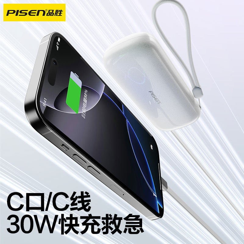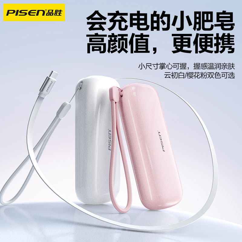 【充电宝3c认证可上飞机】品胜小肥皂2025新款自带伸缩线30w快充迷你便携小巧适用苹果17专用正品官方旗舰店