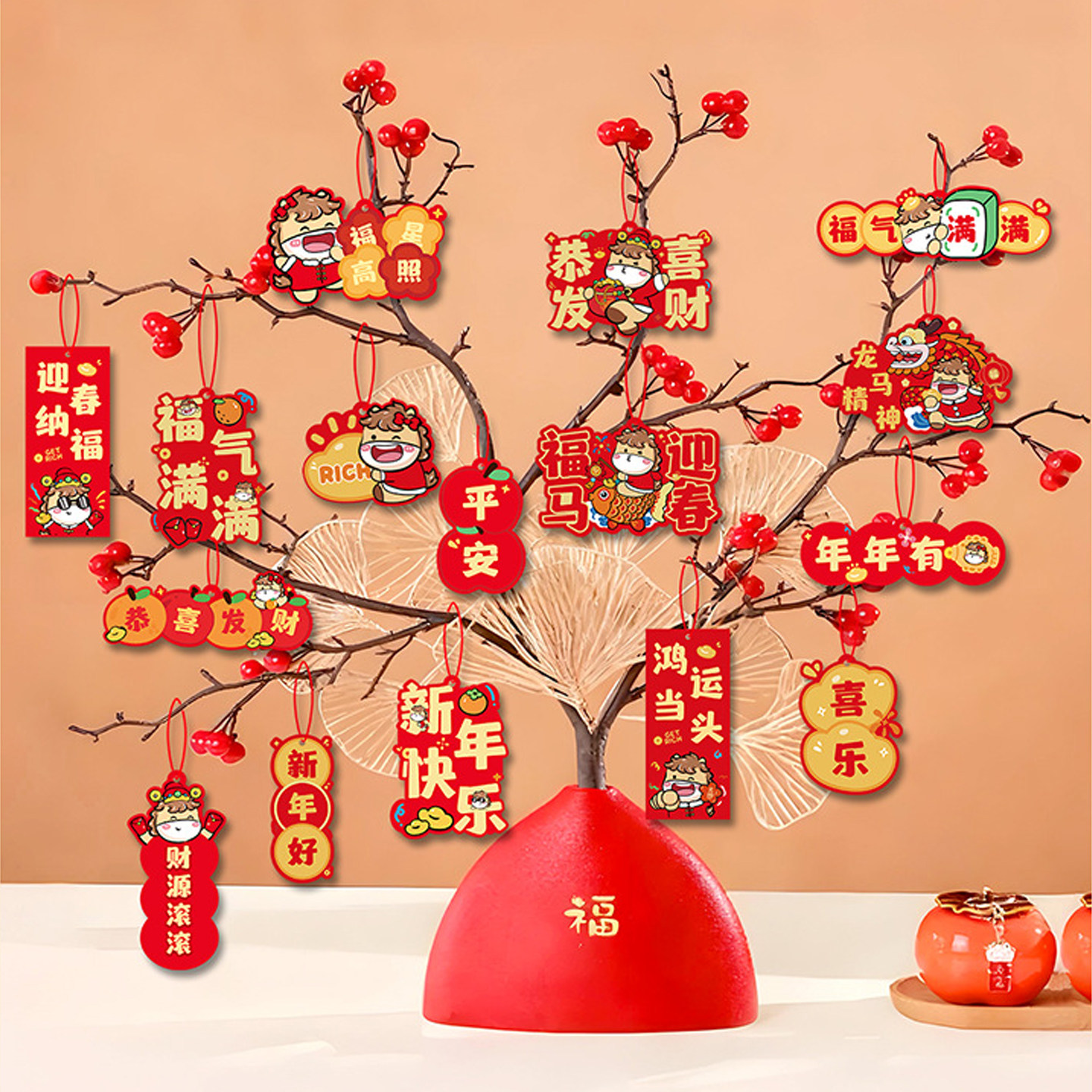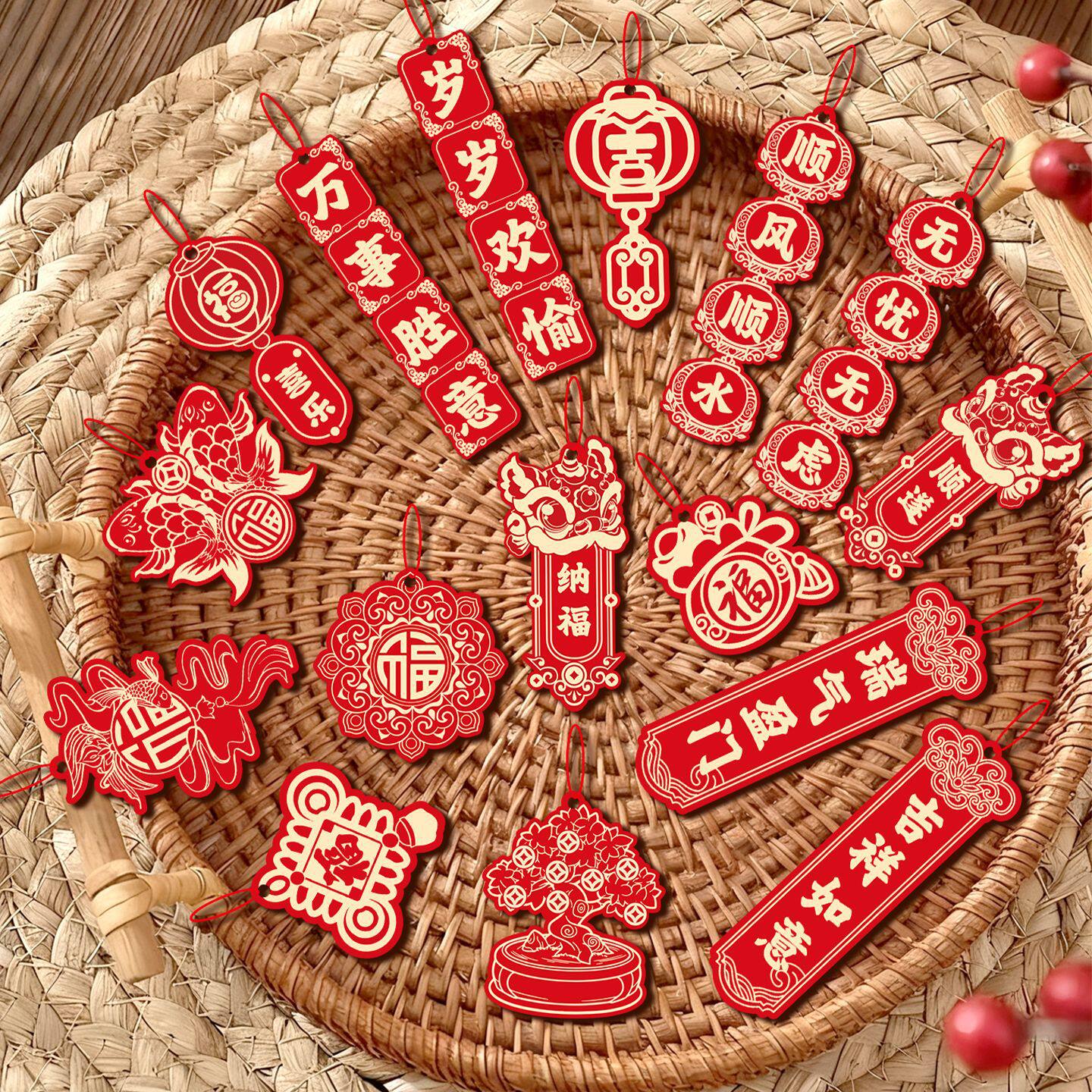 2026新年装饰挂件许愿卡吊卡树吊牌挂牌马年挂签新年快乐布置春节过年挂饰喜庆摆件贺卡包装礼物小卡片留言卡