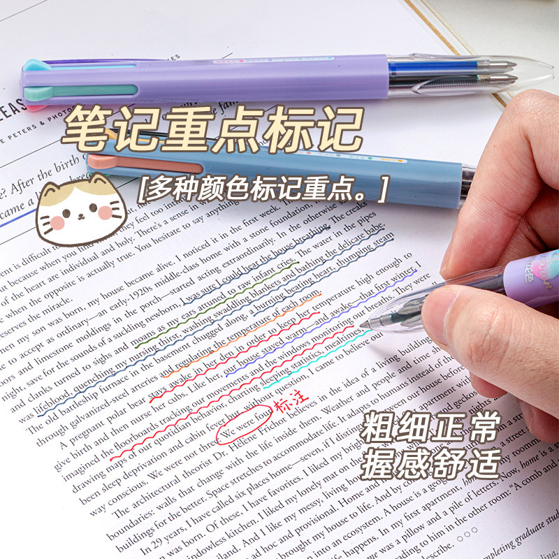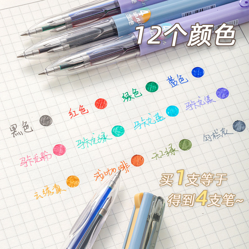 爱好四色笔中性笔按动多色笔四合一多功能模块笔莫兰迪色彩色中性笔做笔记专用彩笔马卡龙色手帐笔文具