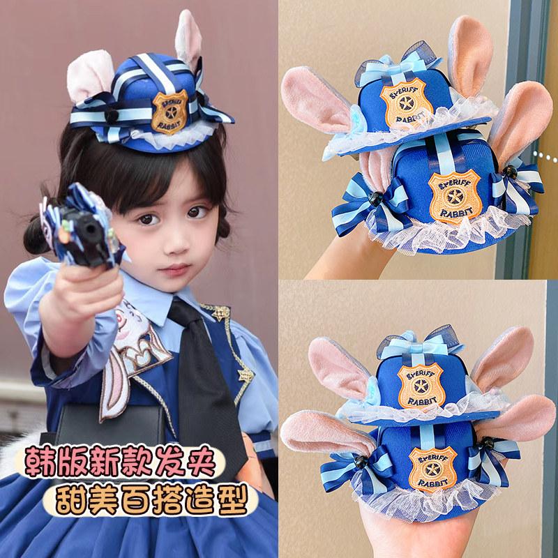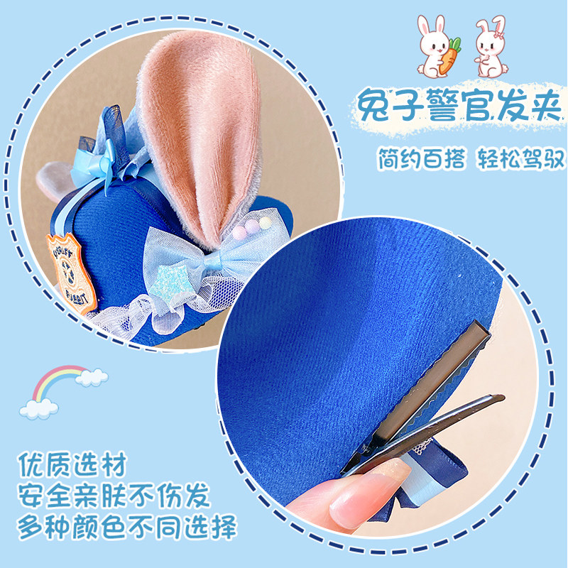 儿童兔子朱迪警官耳朵帽子发夹疯狂动物城头饰小女孩可爱发卡发饰