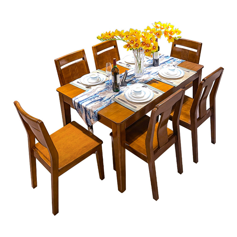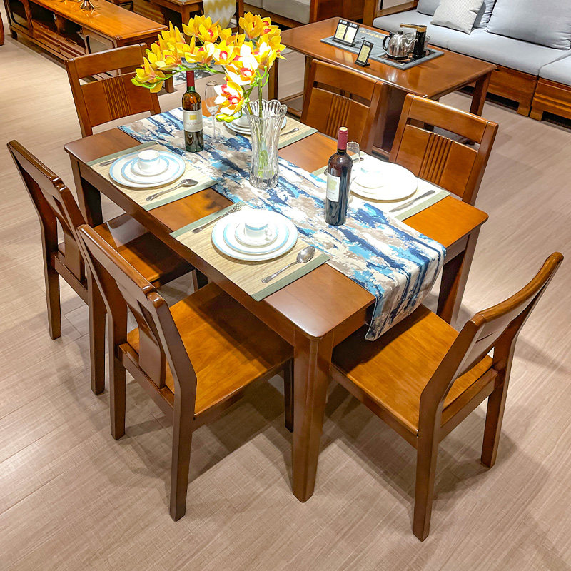 全实木餐桌椅组合现代中式餐台长方形1.38饭桌小户型胡桃木餐桌