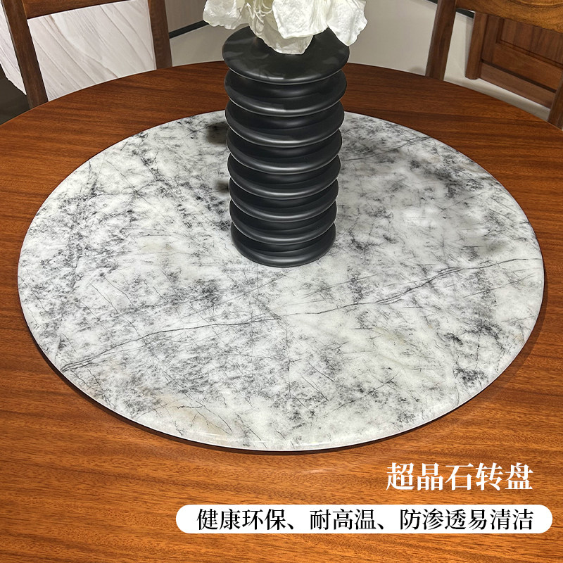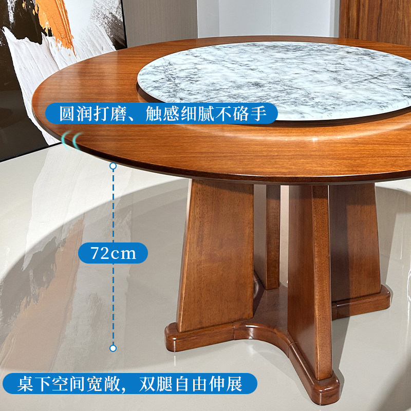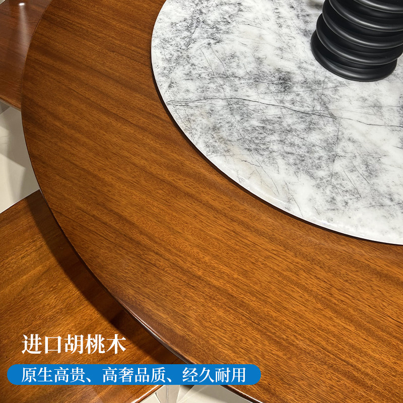 胡桃木圆桌全实木餐桌家用小户型现代中式圆形餐桌椅组合带转盘