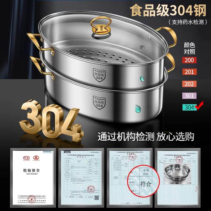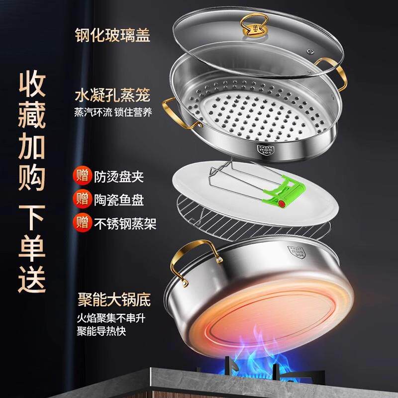 苏泊尔蒸鱼锅家用神器304不锈钢大容量大号清蒸锅蒸笼电磁炉椭圆