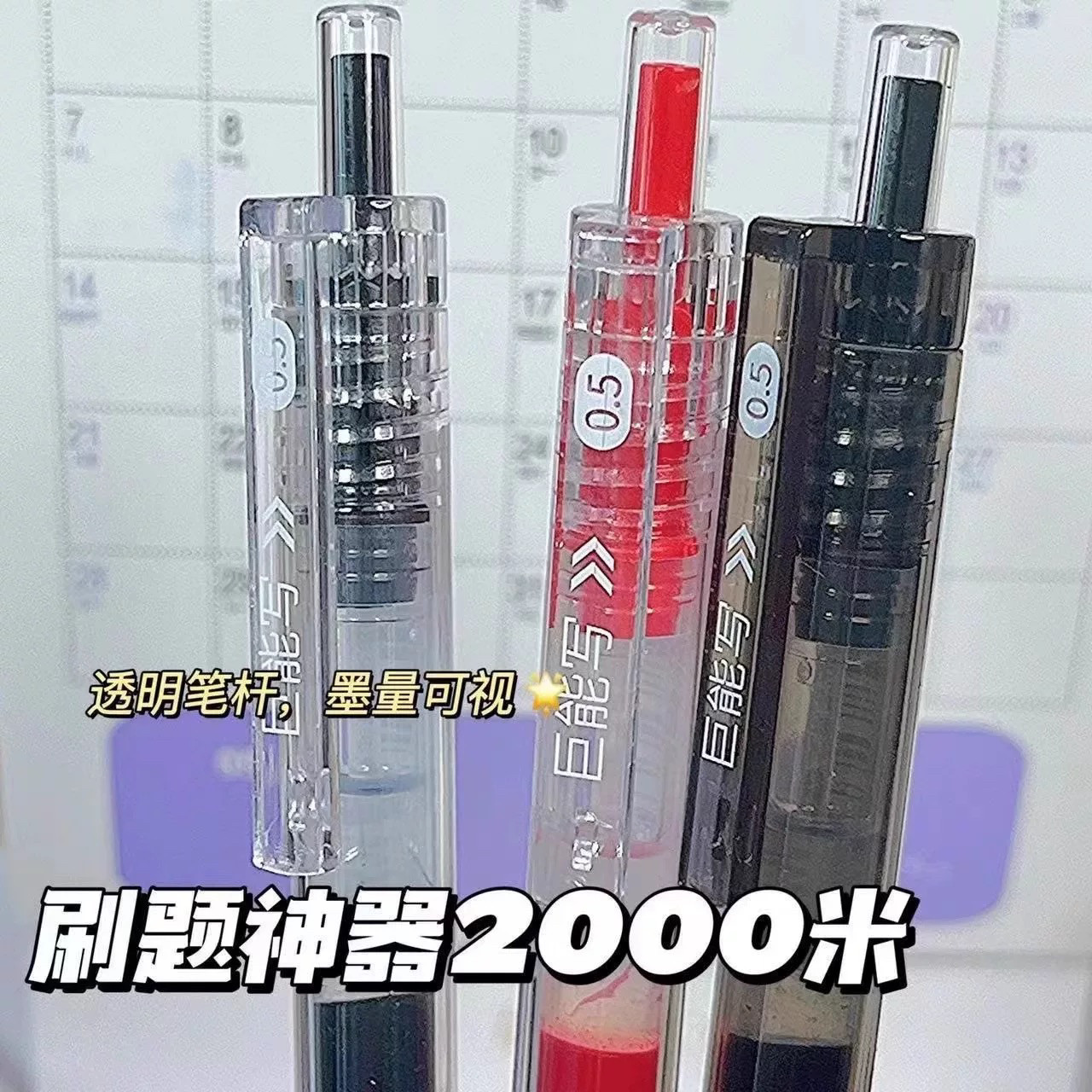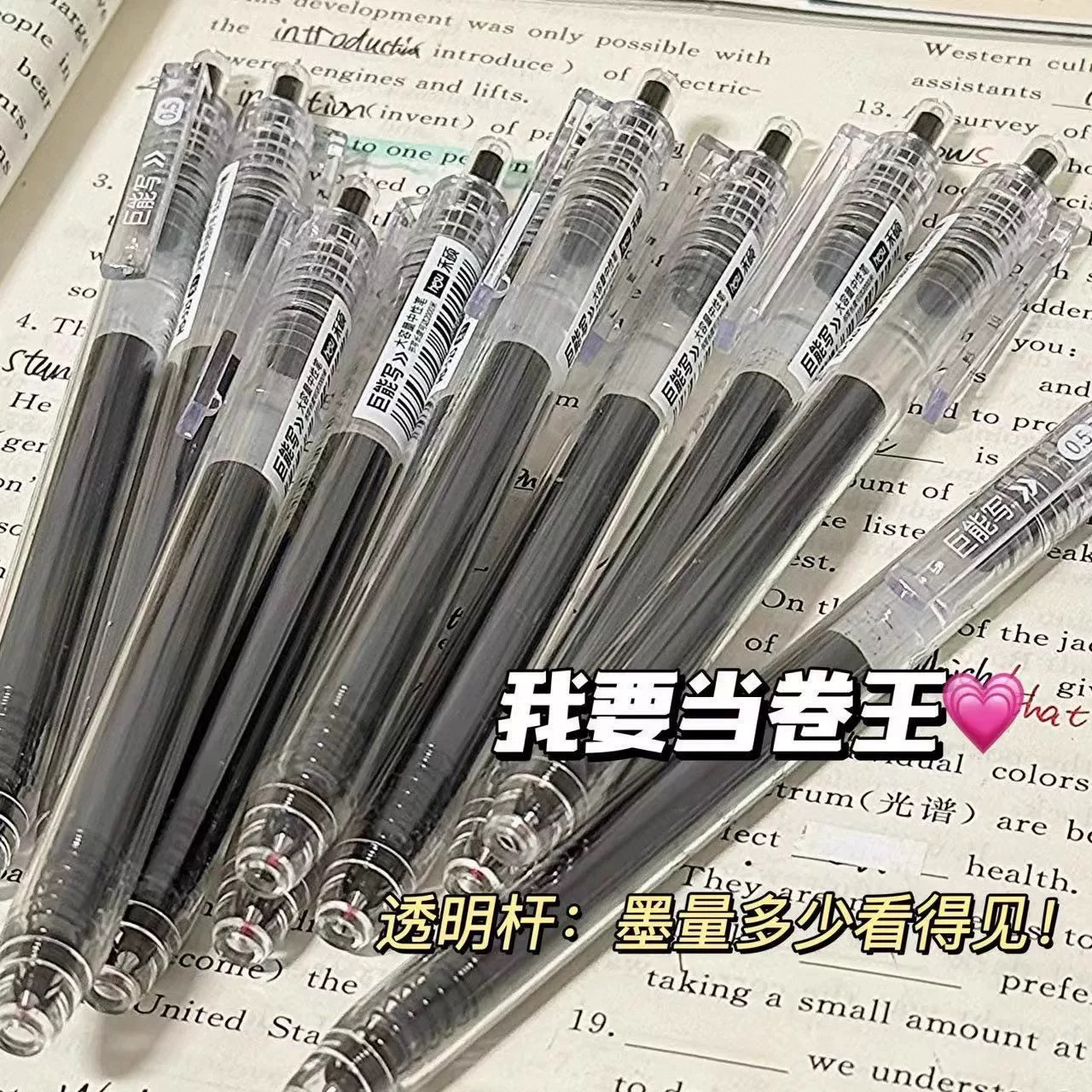 ST刷题笔高颜值按动中性笔圆珠笔黑色水笔小学生专用考试0.5速干碳素笔水性黑笔按压式做笔记签字笔非按斤卖