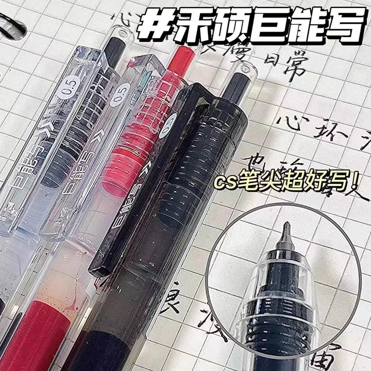 禾硕学霸巨能写按动中性笔简约大容量速干CS头刷题黑笔高颜值0.5