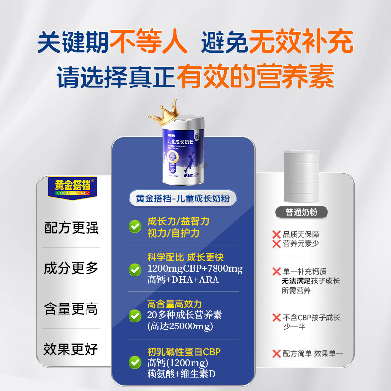 6-20岁学生青少年CBP高钙7以上DHA补乳铁蛋白脑助力儿童成长奶粉