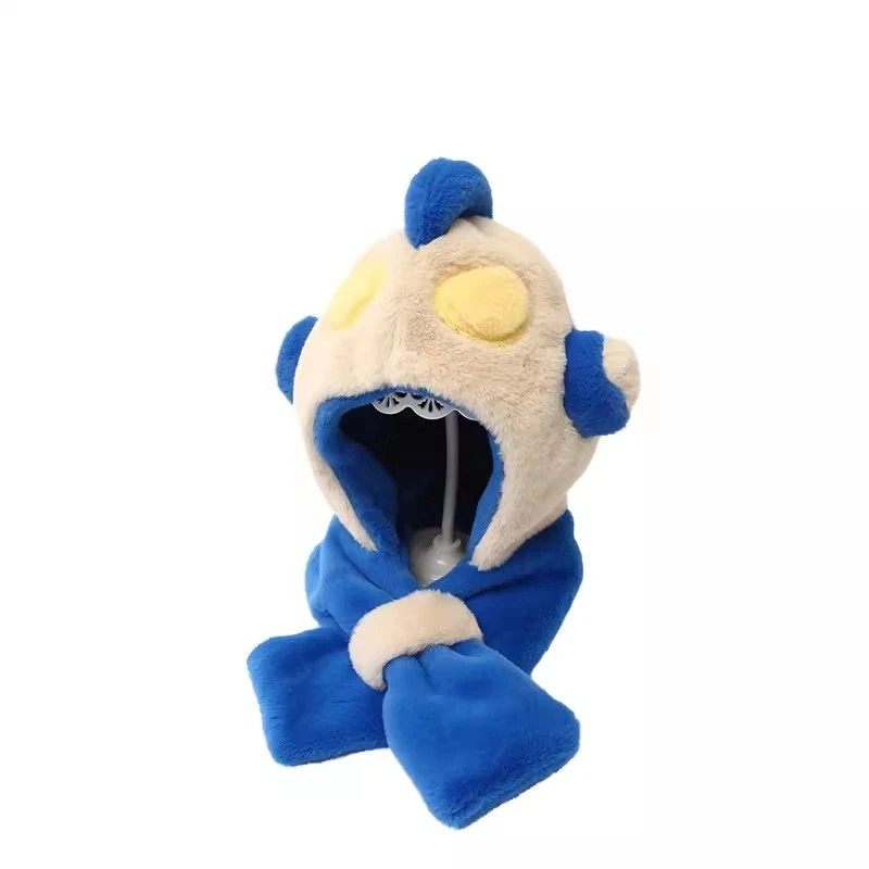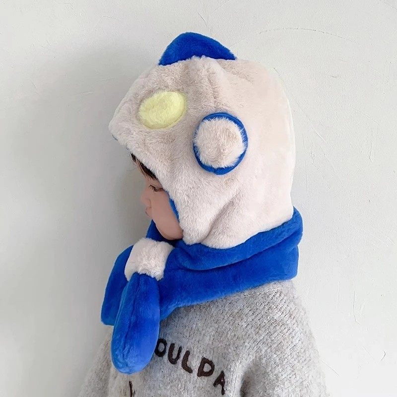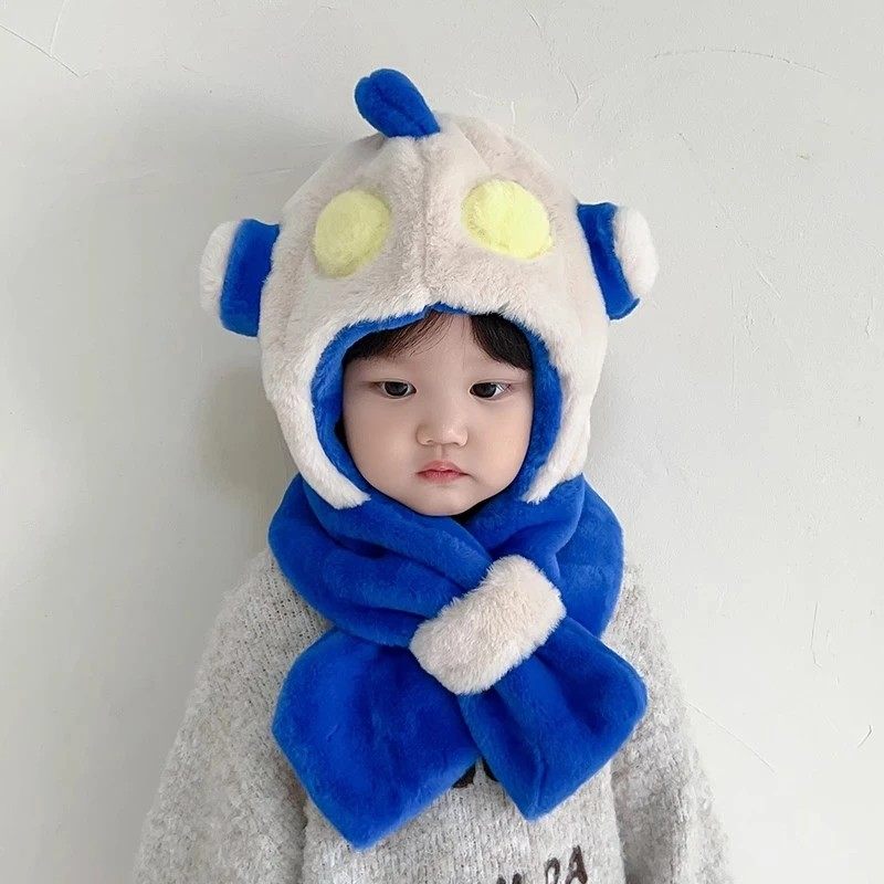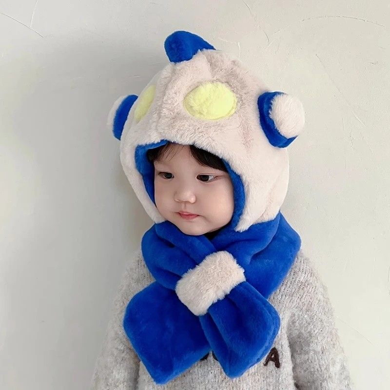 尼多熊婴儿帽子秋围脖一体宝宝毛绒帽防风护耳帽冬季保暖婴幼儿帽