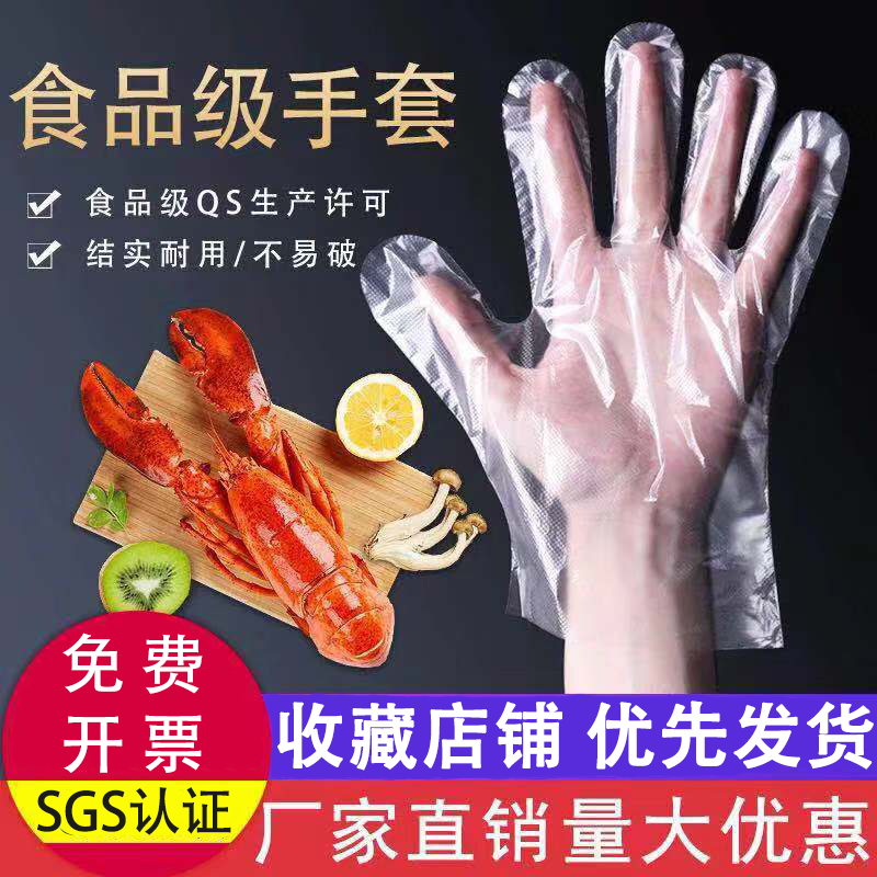 一次性手套pe食品级专用加厚耐用家用抽取式透明吃小龙虾餐饮盒装