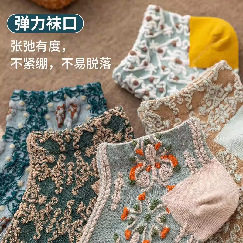 袜子女士复古宫廷风短袜薄款时尚少女潮流女袜 5双/10双装多规格